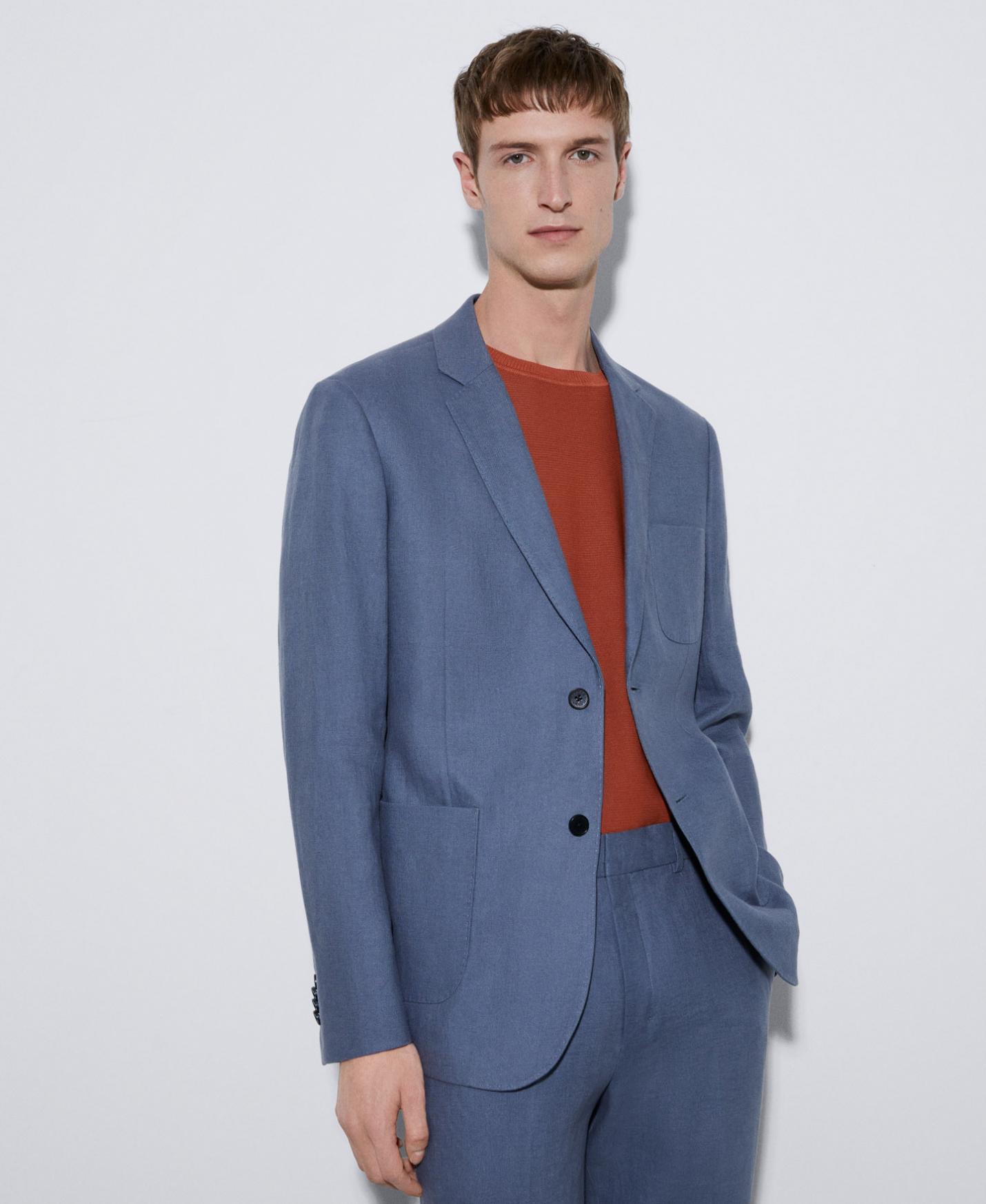 Nuevo traje Adolfo Dominguez | Blazer clásica en lino responsable Azulcuadros Hombre