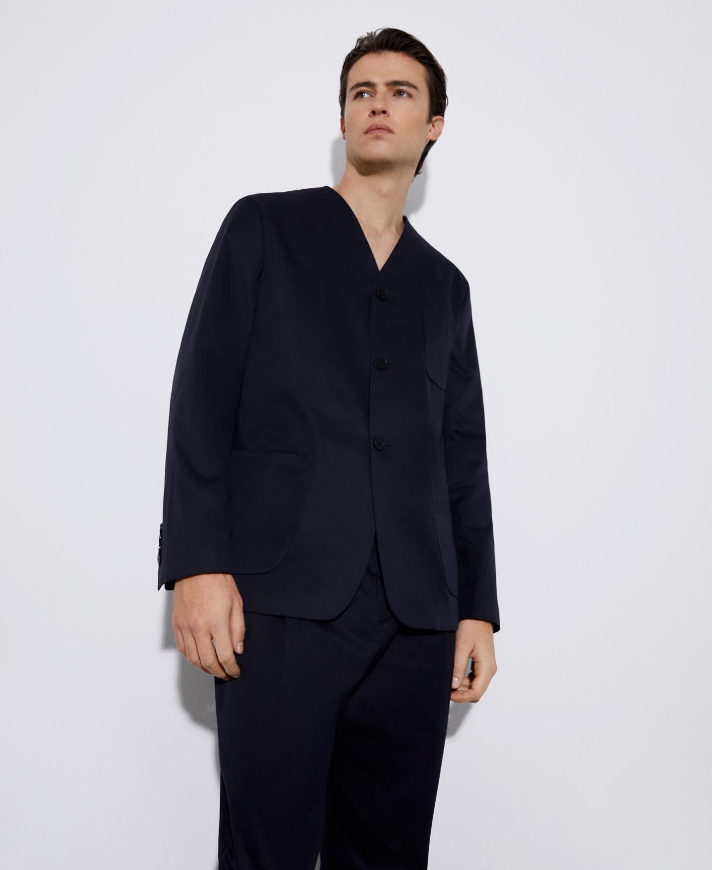 Nuevo traje Adolfo Dominguez | Blazer cuello Mao en algodón y lino Azulmarino Hombre