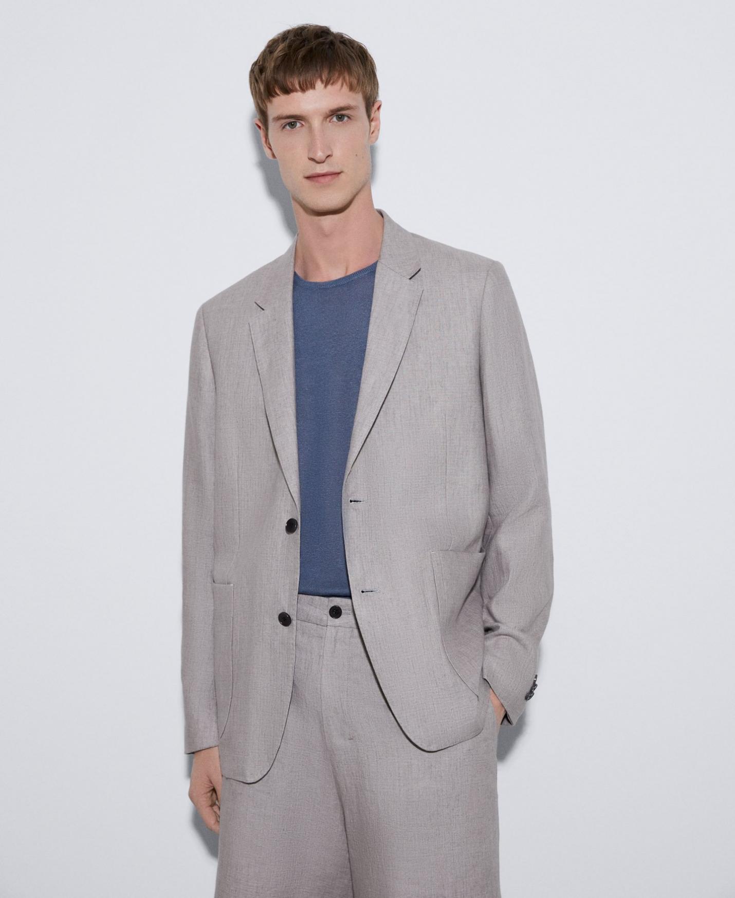 Blazer Adolfo Dominguez | Blazer dos botones en lino Grisclaro Hombre