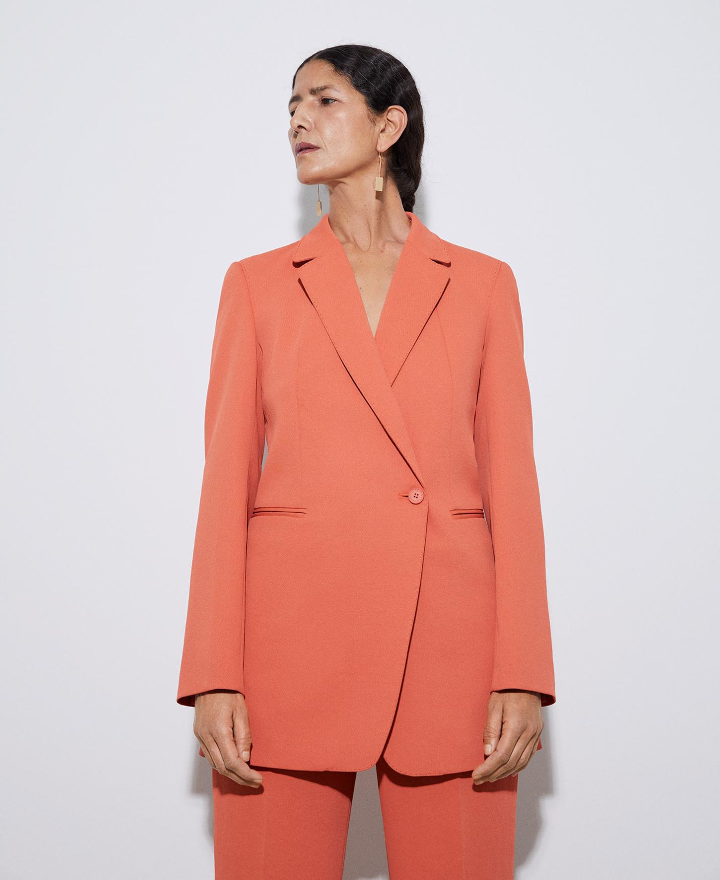 Blazer Adolfo Dominguez | Blazer larga pespuntes vistos Naranja Mujer