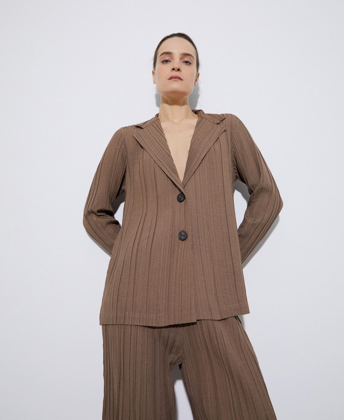 Nuevo traje Adolfo Dominguez | Americana en crinkle con cierre botones Nuez Mujer