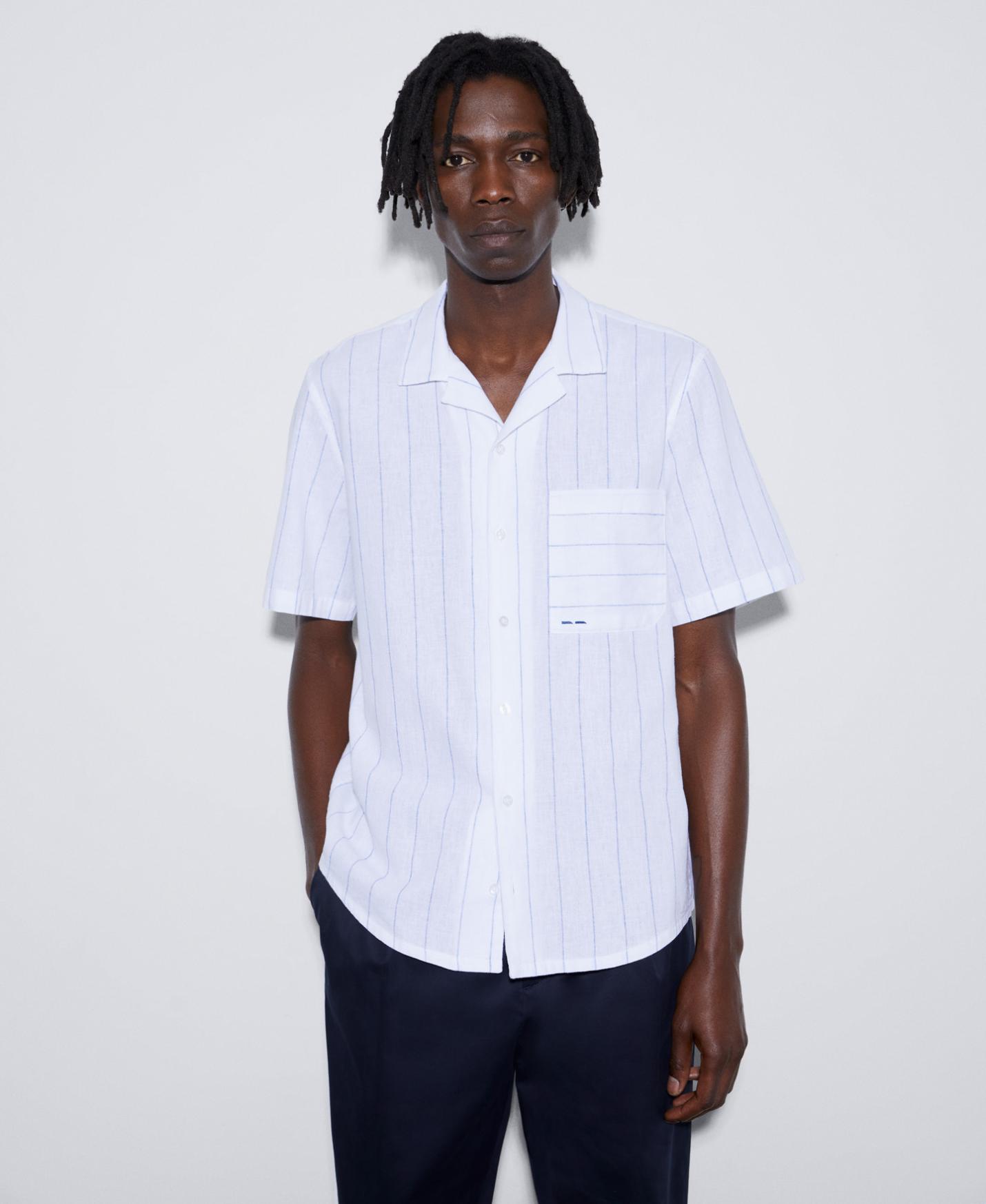 Lino Adolfo Dominguez | Camisa cuello solapa 100% lino Azulrayas Hombre