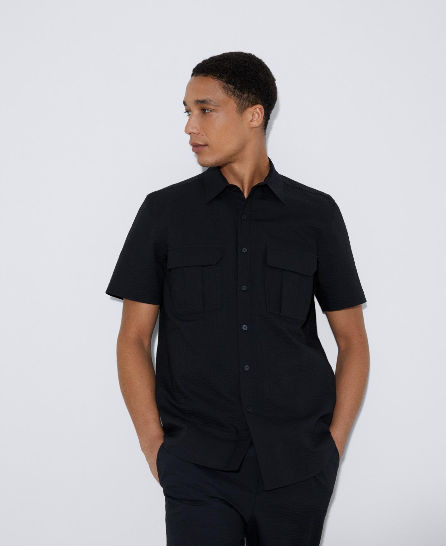 Camisas Adolfo Dominguez | Camisa manga corta seersucker de algodón Negro Hombre