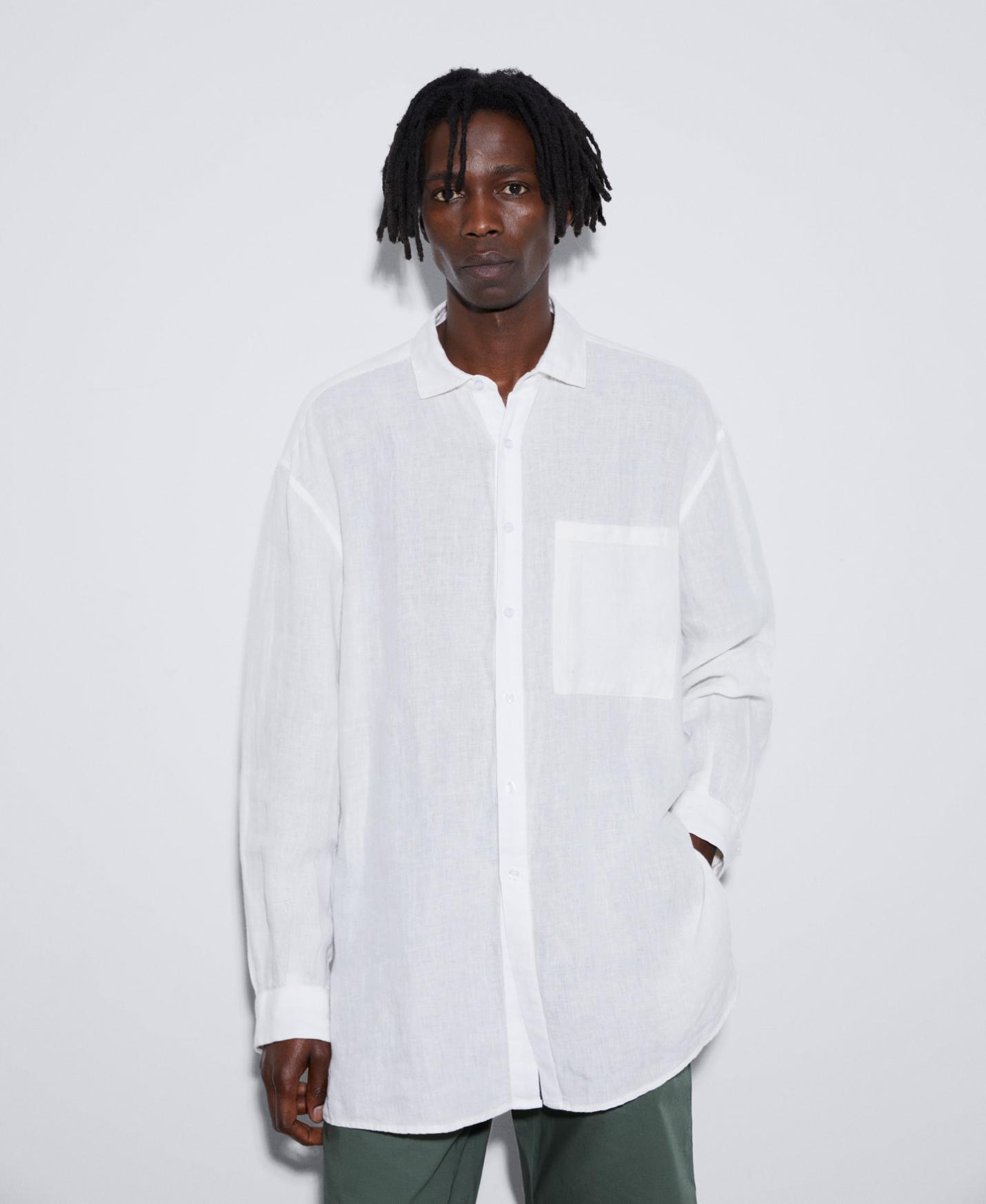 Camisas Adolfo Dominguez | Camisa oversize en lino Blancoroto Hombre