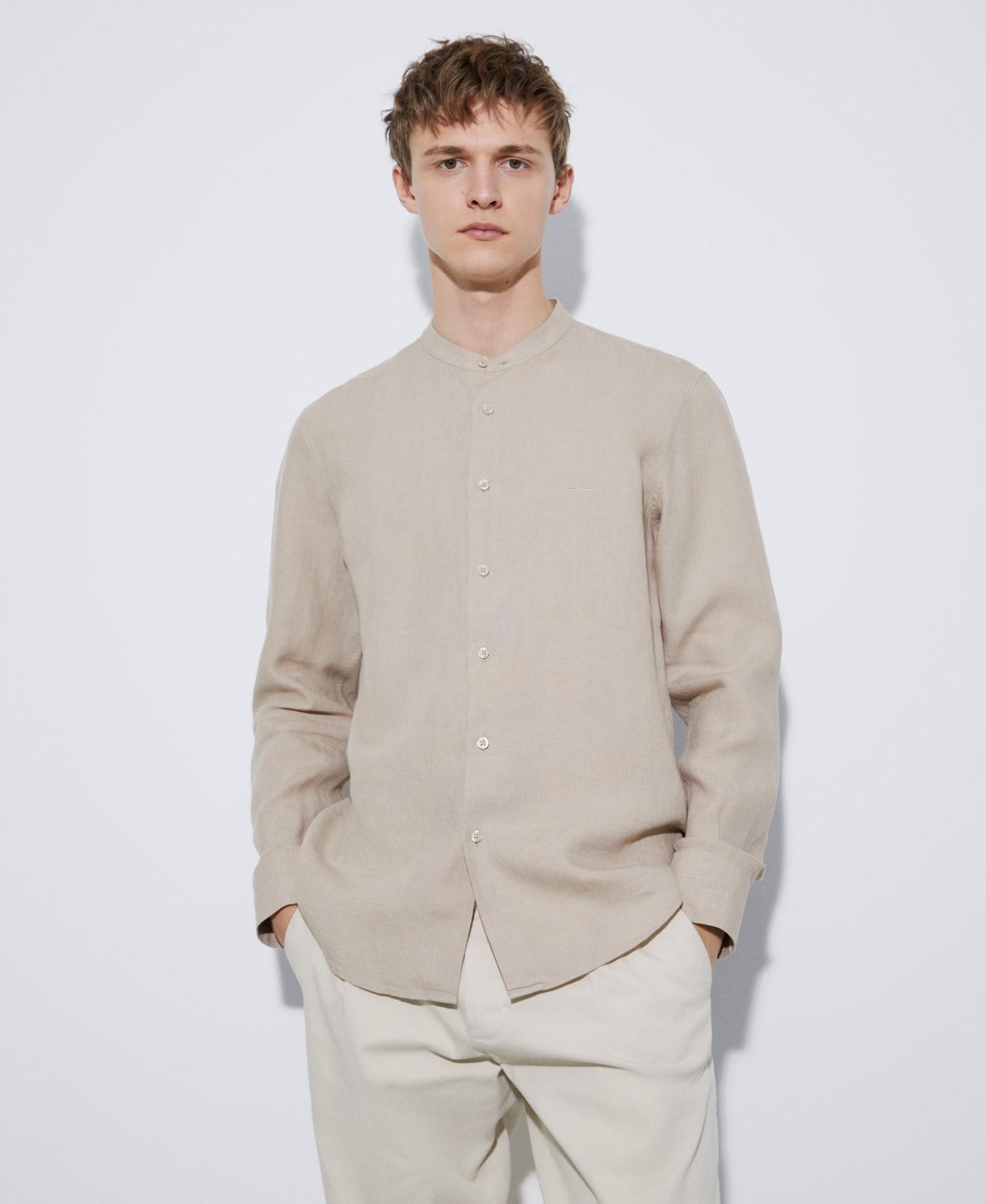 Lino Adolfo Dominguez | Camisa cuello Mao en lino Arena Hombre