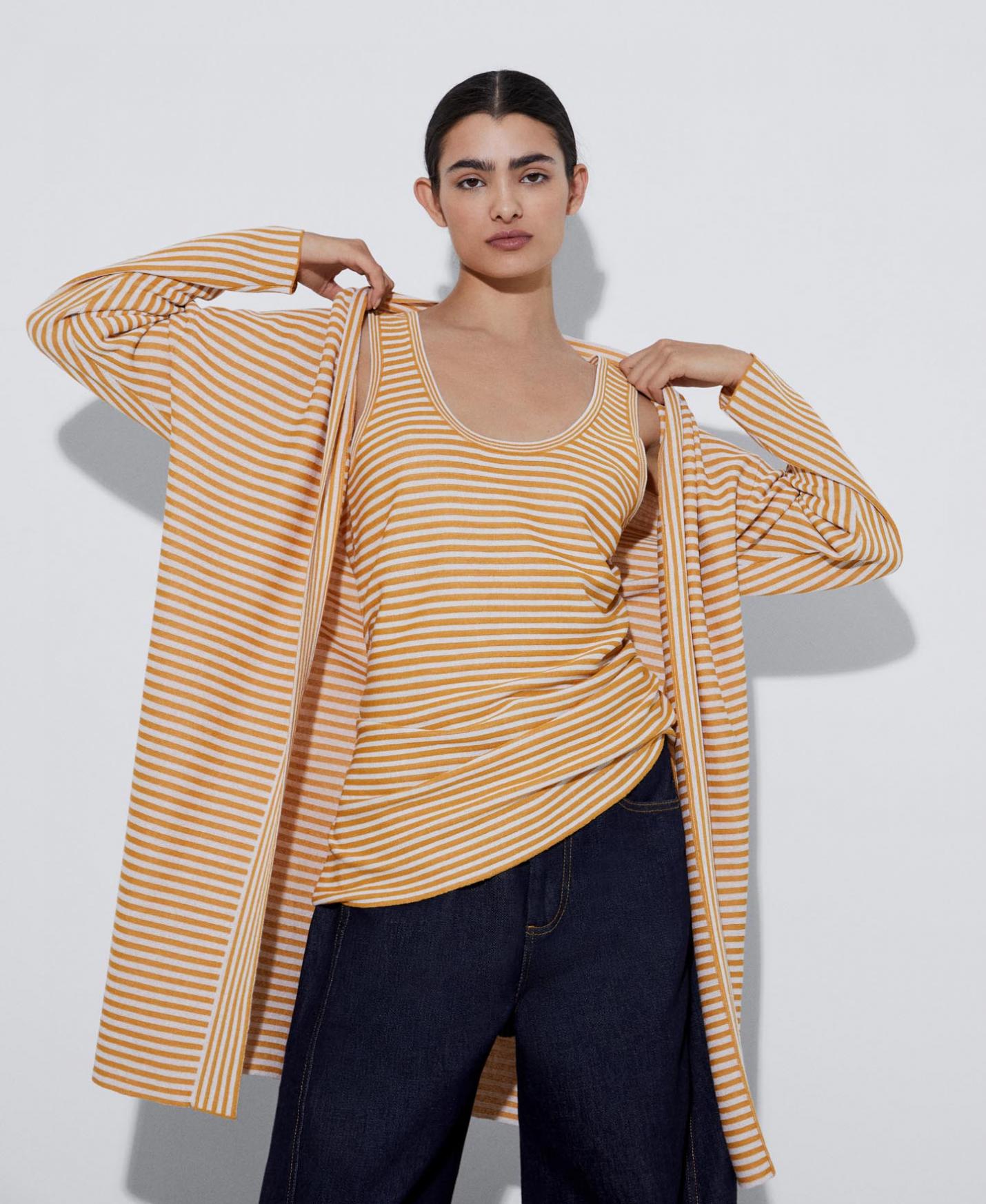 Punto Adolfo Dominguez | Chaqueta kimono de rayas Camel/Crudo Mujer