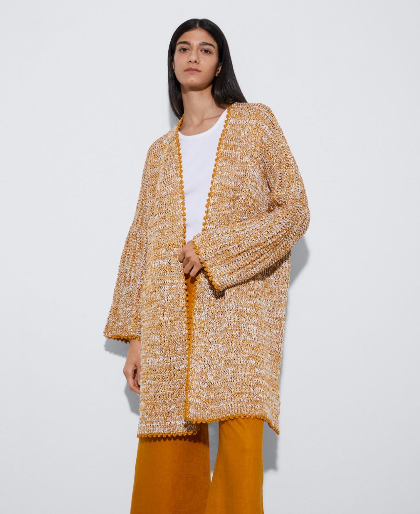 Punto Adolfo Dominguez | Chaqueta kimono en doble frontura Tabaco/Crudo/Teja Mujer