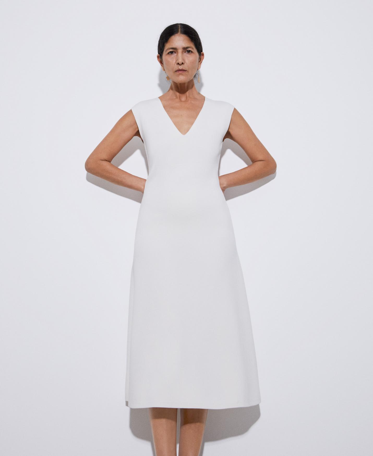 Vestidos y monos Adolfo Dominguez | Vestido cuello pico en viscosa y nylon Crudo Mujer