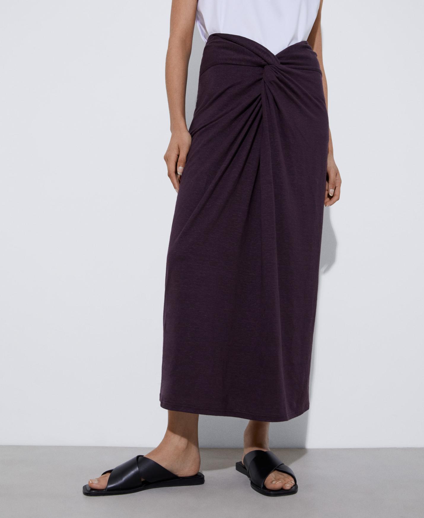 Faldas Adolfo Dominguez | Falda larga con detalle de nudo en lino Marron/Crudo Mujer