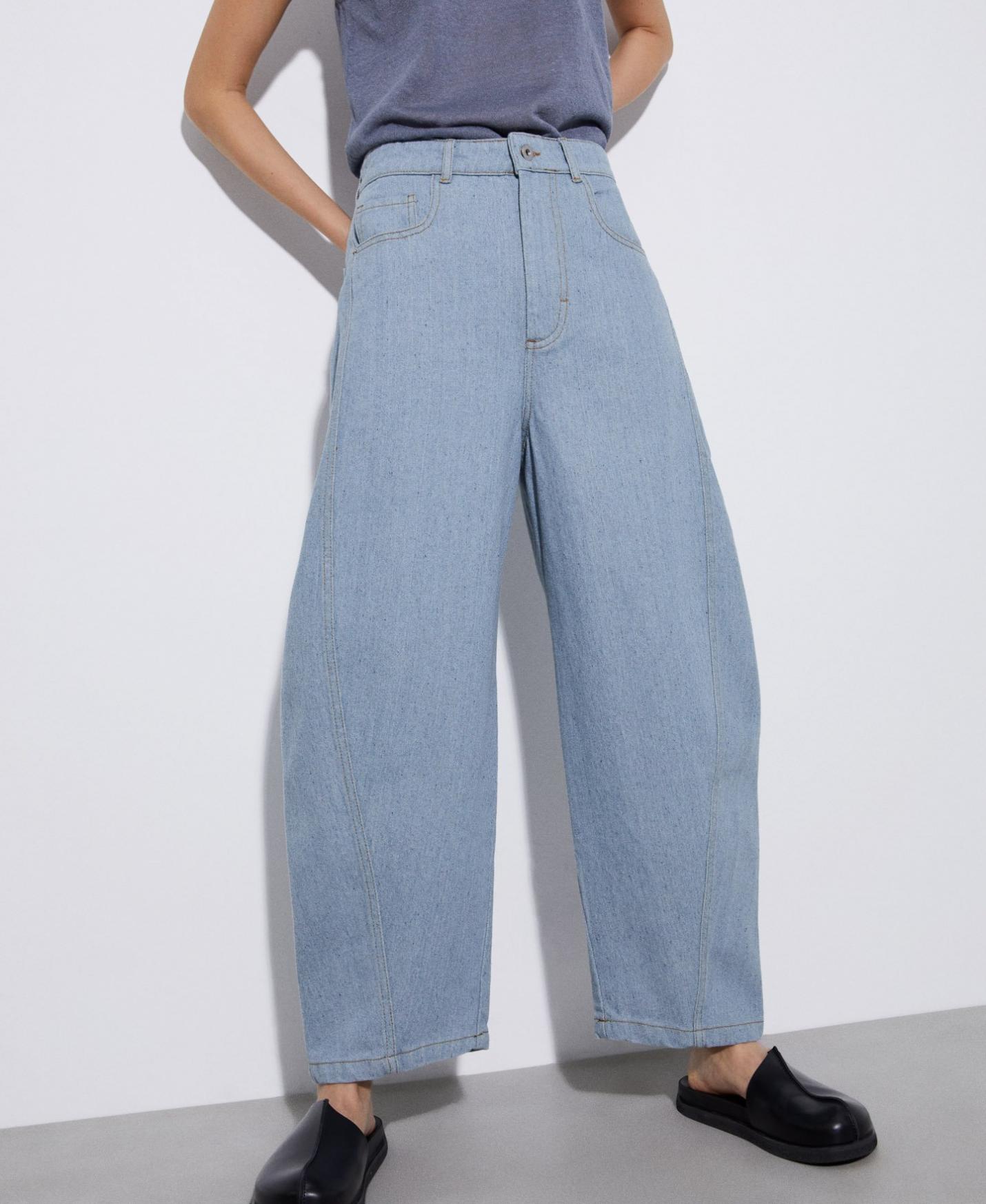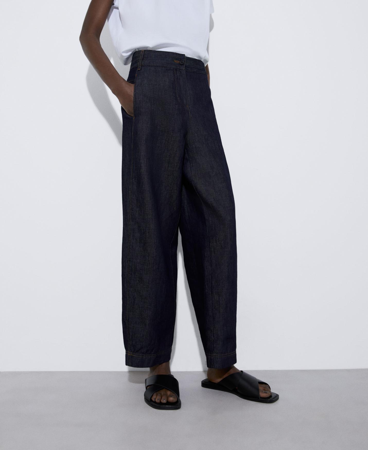 Jeans Adolfo Dominguez | Pantalón banana en algodón y lino Azul Mujer
