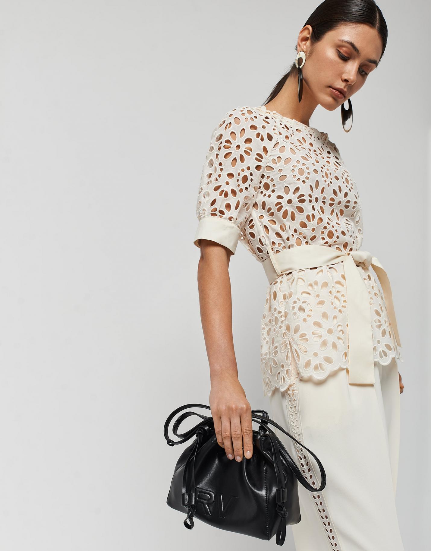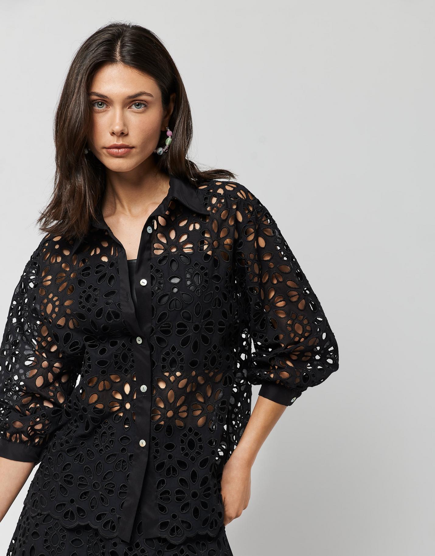Lights & Shadows Roberto Verino | Blusa Abullonada Bordado Suizo Negro Mujer