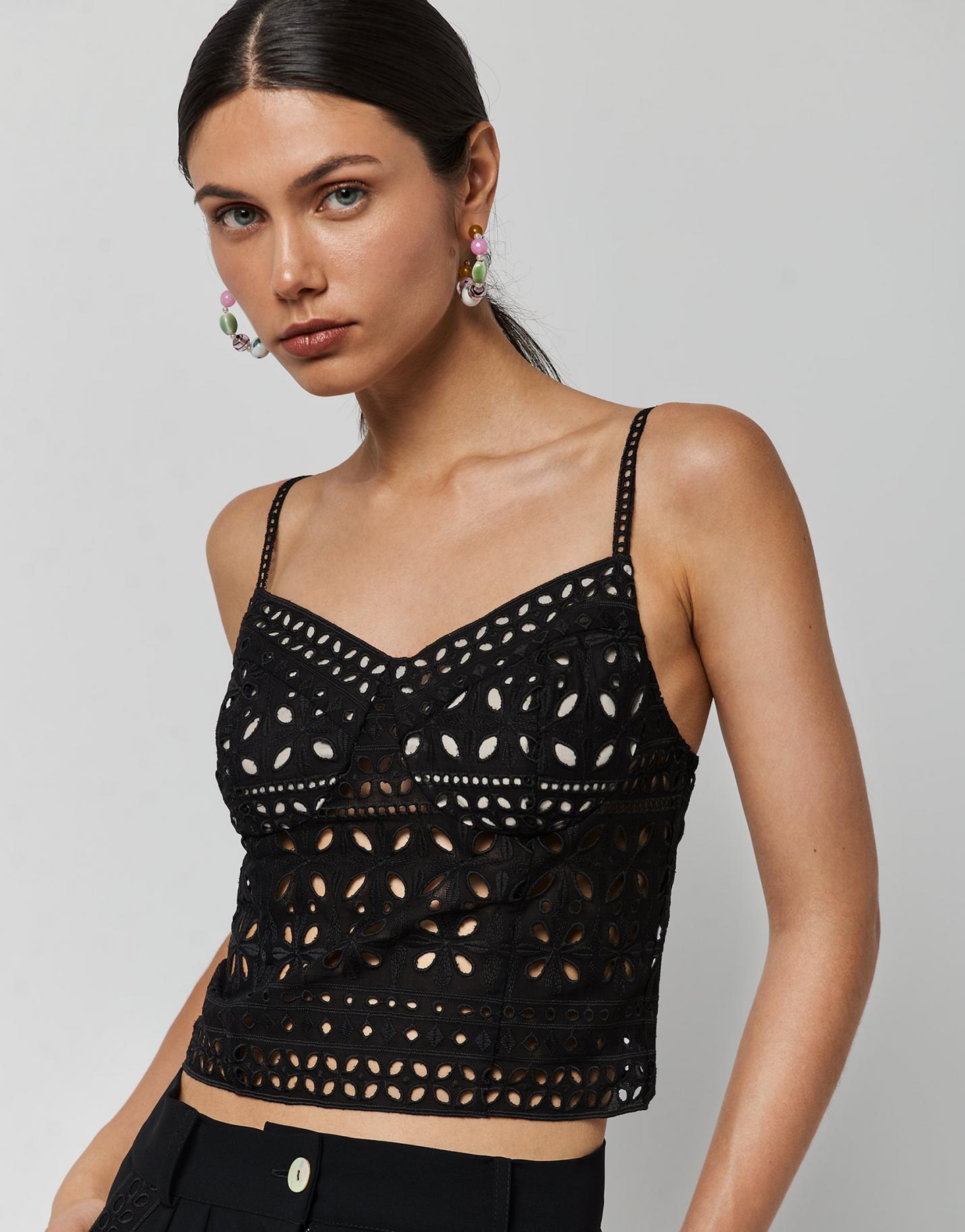 Lights & Shadows Roberto Verino | Crop Top Bordado Suizo Negro Mujer