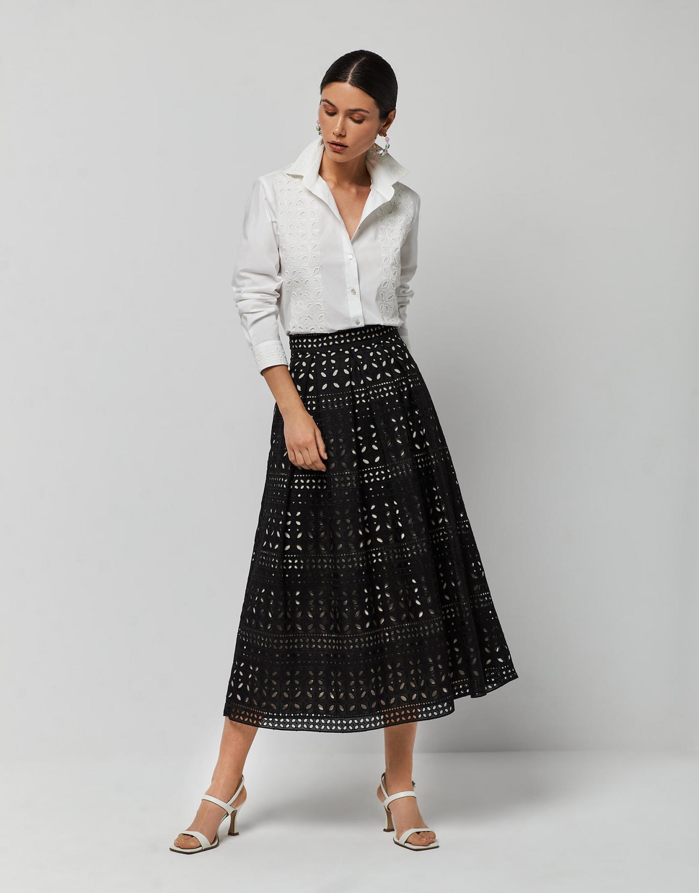 Lights & Shadows Roberto Verino | Falda Midi Bordado Suizo Negro Mujer