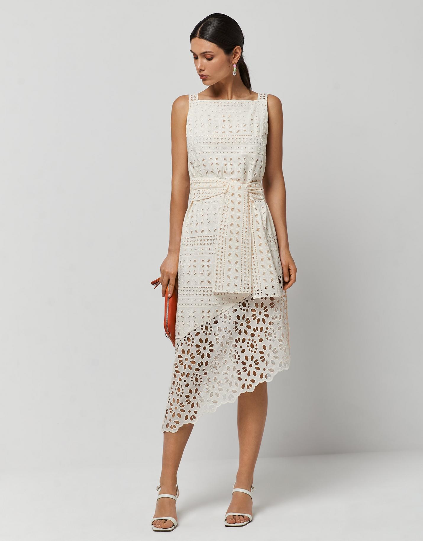 Lights & Shadows Roberto Verino | Vestido Bajo Asimétrico Bordado Suizo Beige Claro Mujer