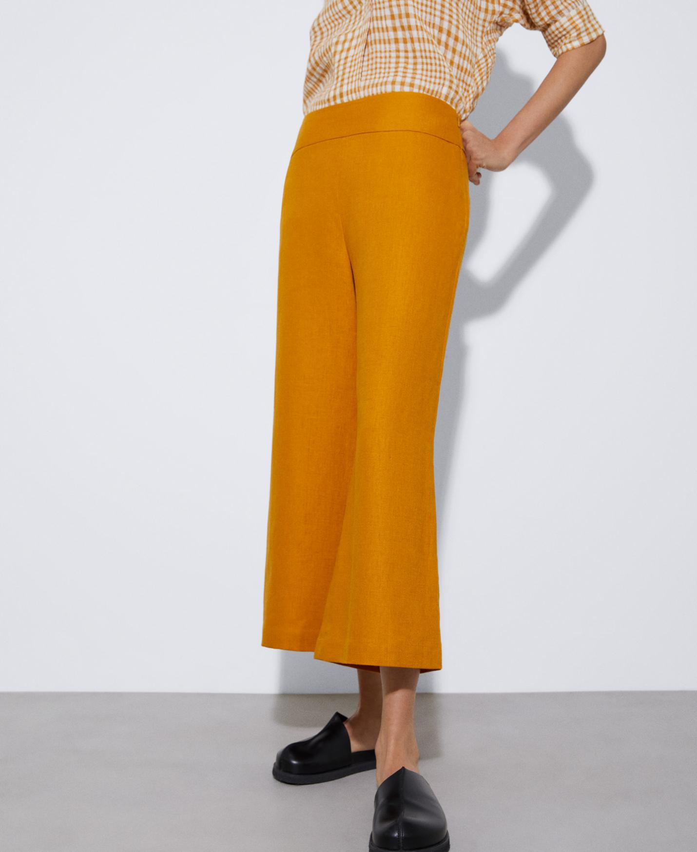 Pantalones Adolfo Dominguez | Pantalón culotte en lino responsable Mostaza Mujer