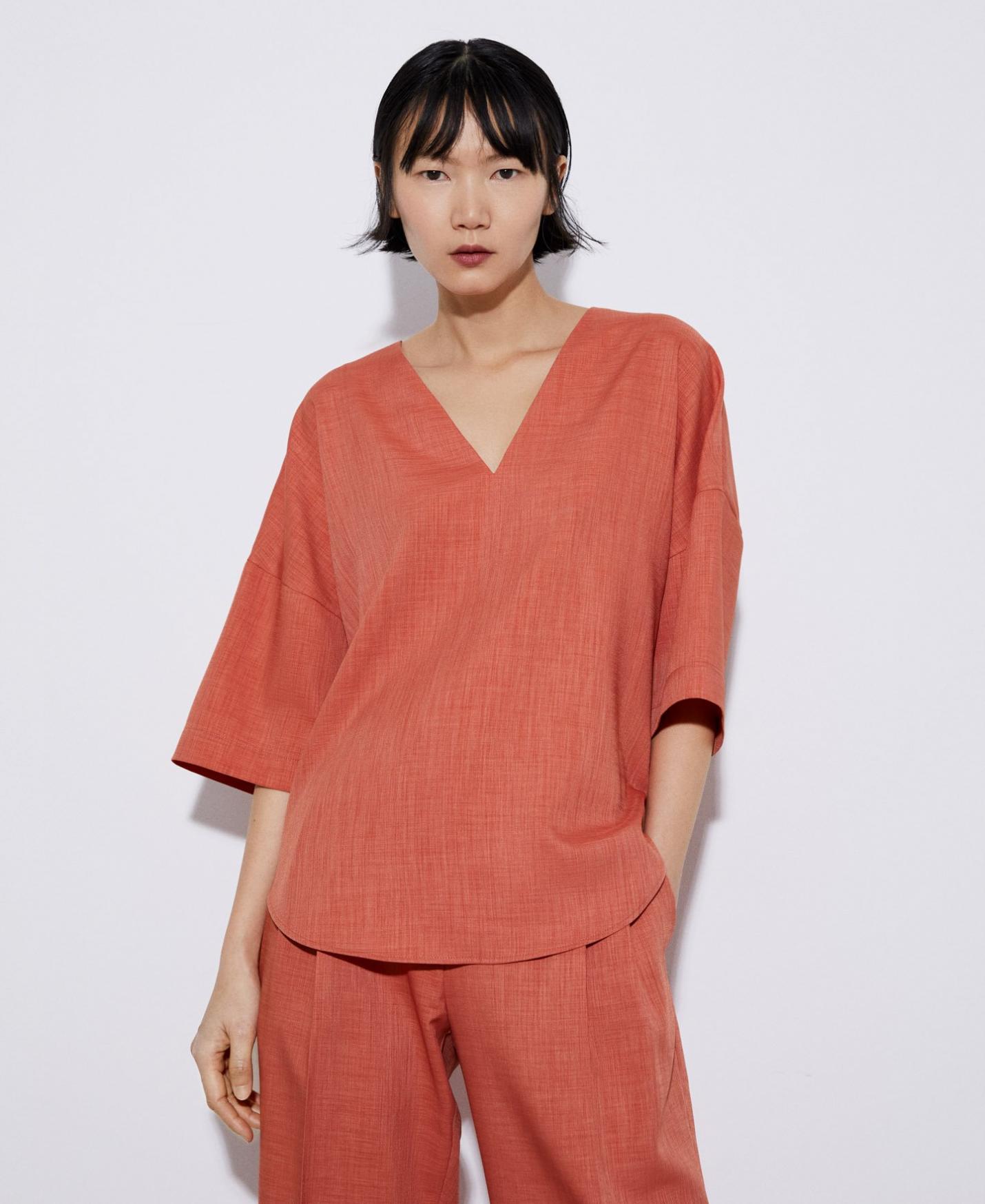 Camisas y tops Adolfo Dominguez | Blusa escote pico en poliéster reciclado Naranja Mujer