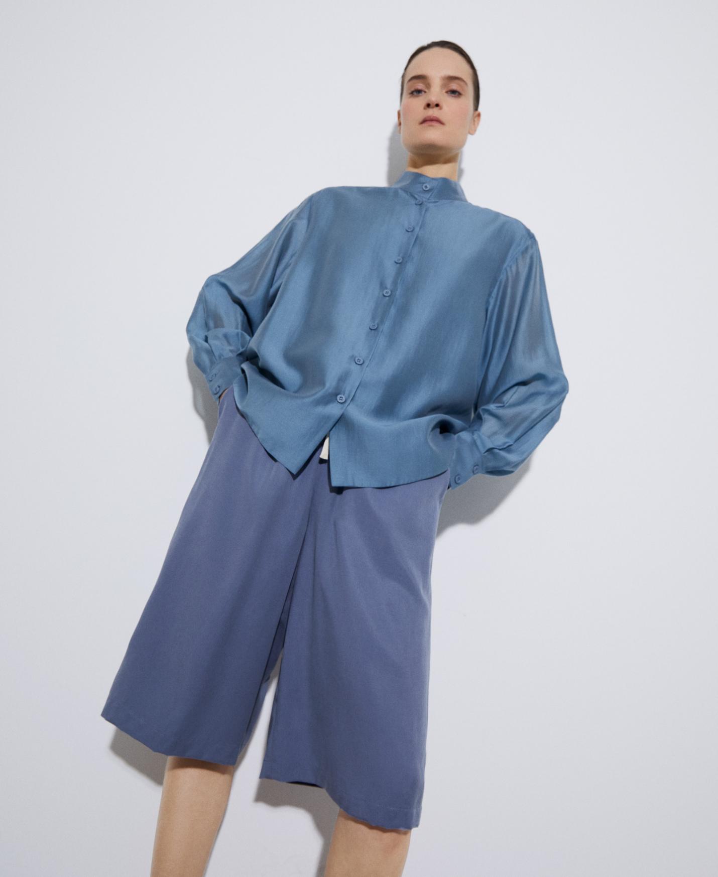 Pantalones Adolfo Dominguez | Bermuda fluída en lyocell TENCEL™ Grisazul Mujer