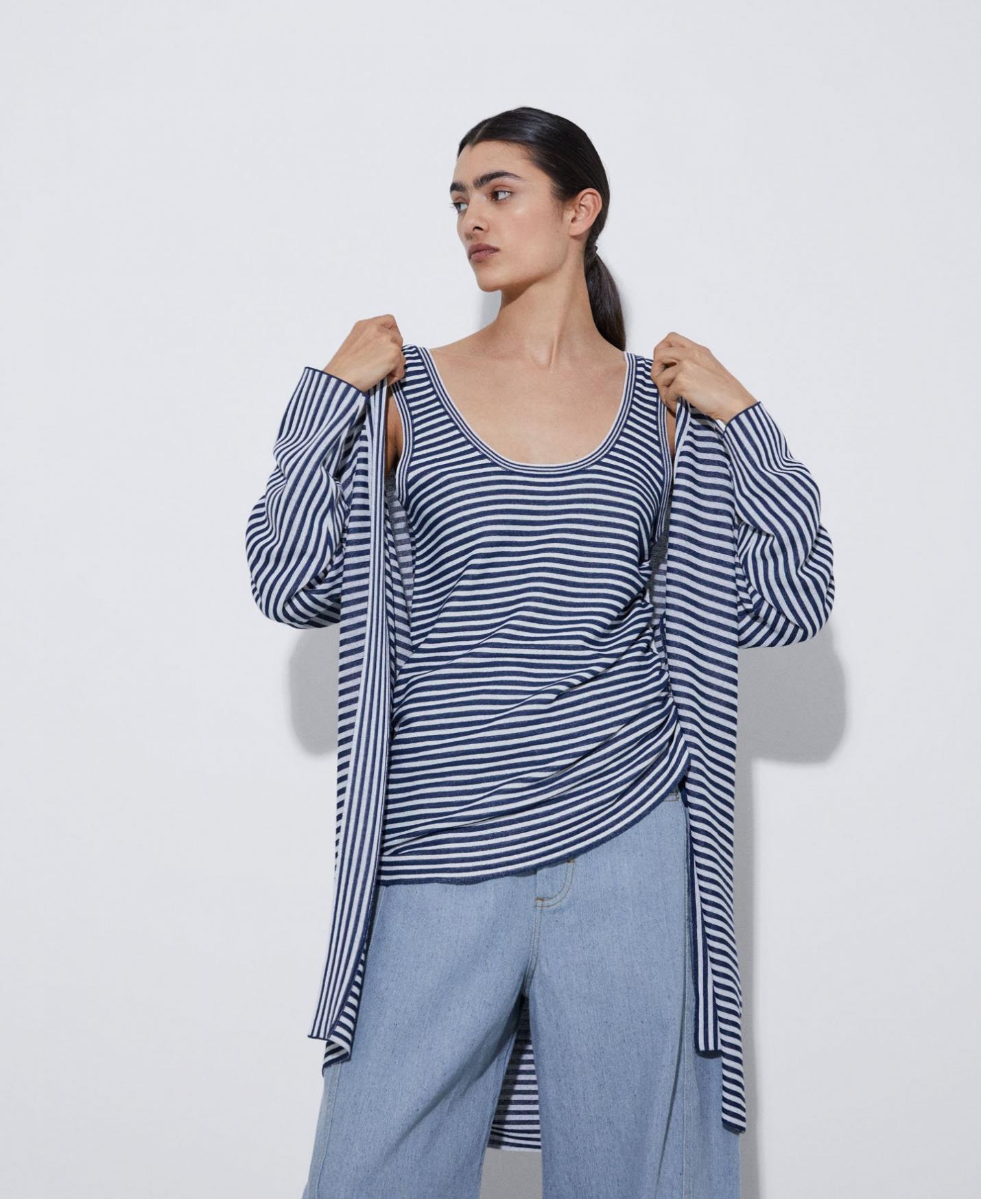Punto Adolfo Dominguez | Chaqueta kimono de rayas Rayasblanco/Azul Mujer