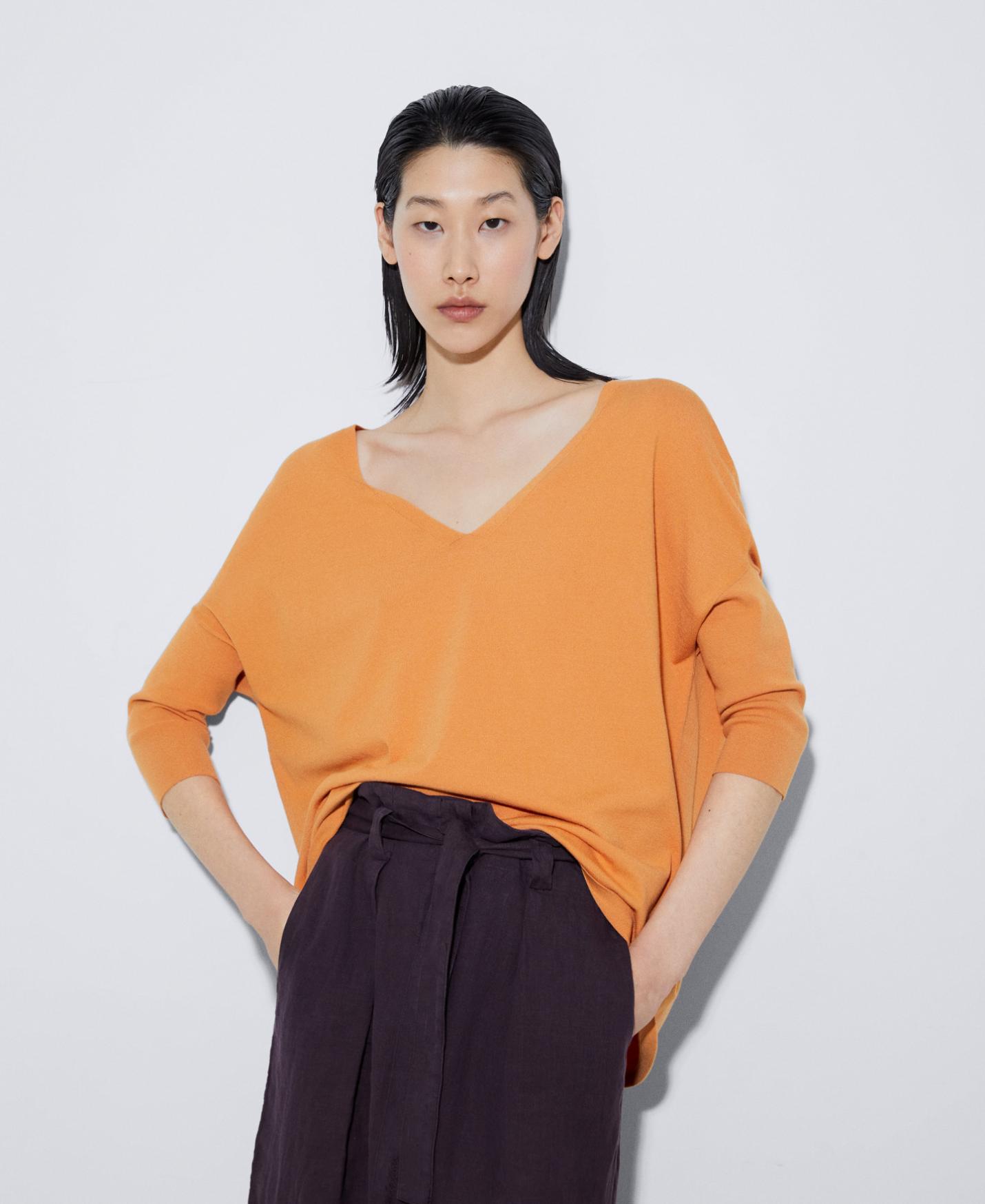 Punto Adolfo Dominguez | Jersey amplio escote pico Naranjaclaro Mujer