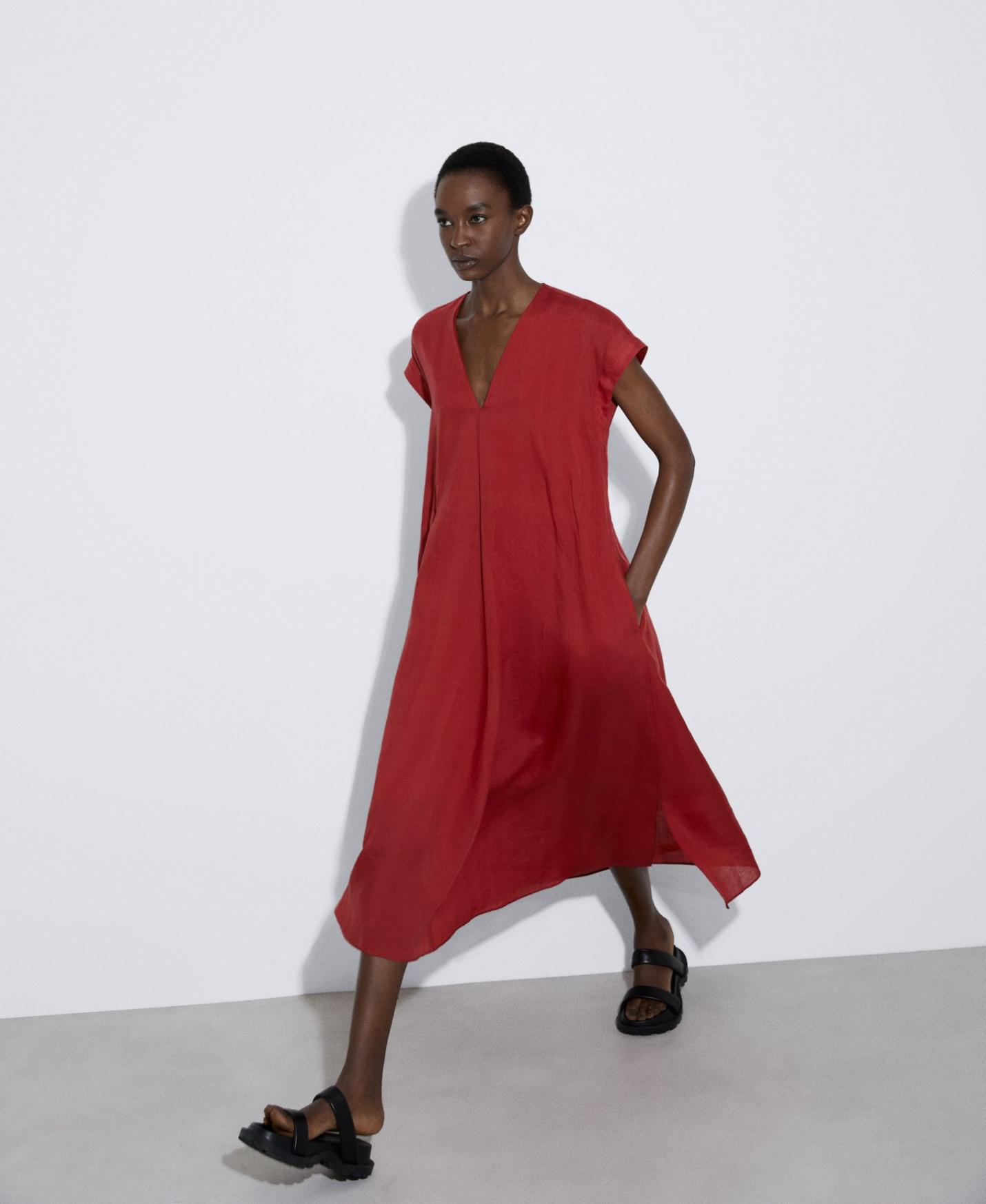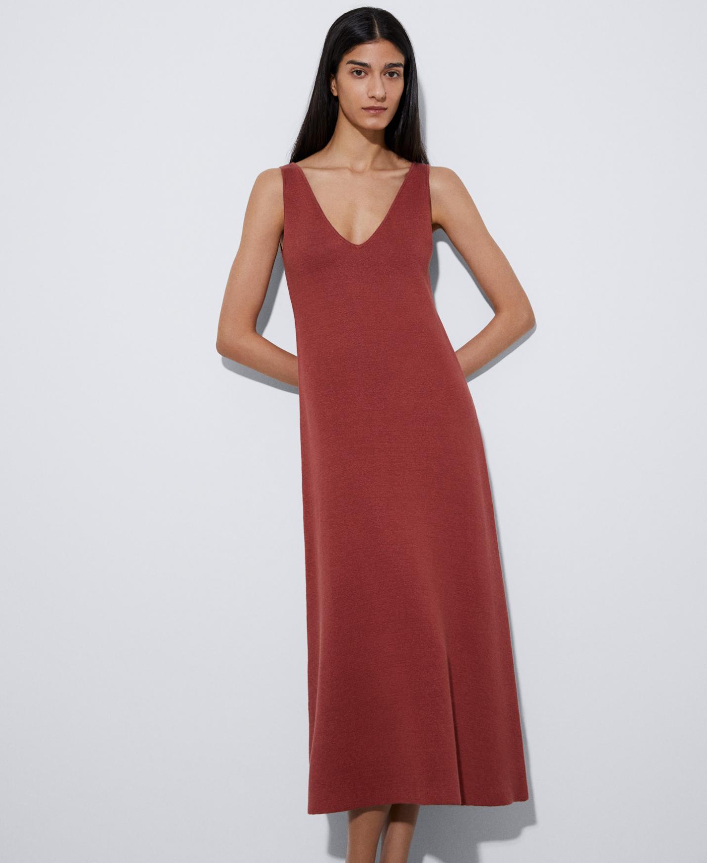 Punto Adolfo Dominguez | Vestido escote pico en lino Teja Mujer