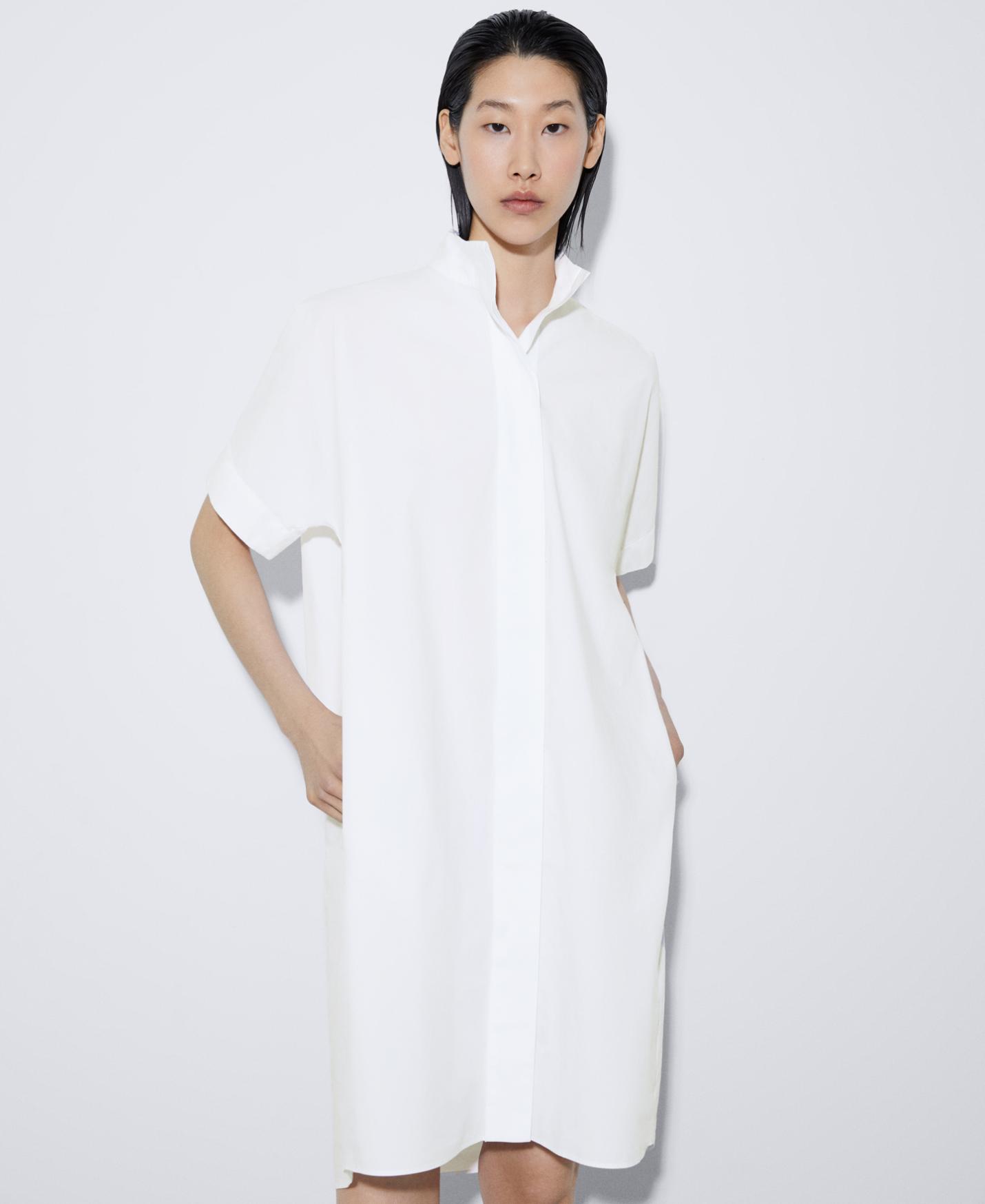 Vestidos y monos Adolfo Dominguez | Vestido camisero cuello Mao Blanco Mujer