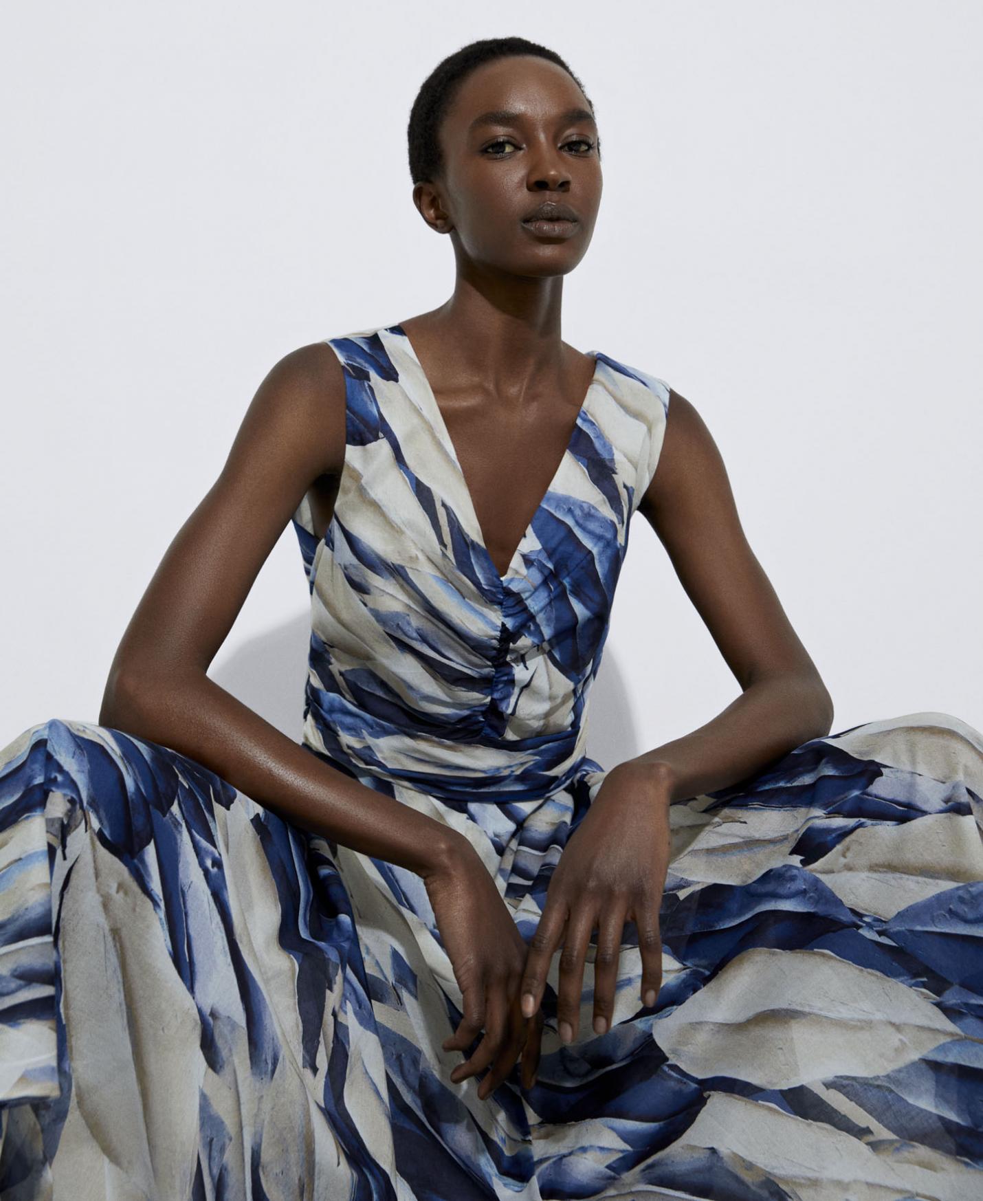 Vestidos y monos Adolfo Dominguez | Vestido estampado escote drapeado Azul Mujer
