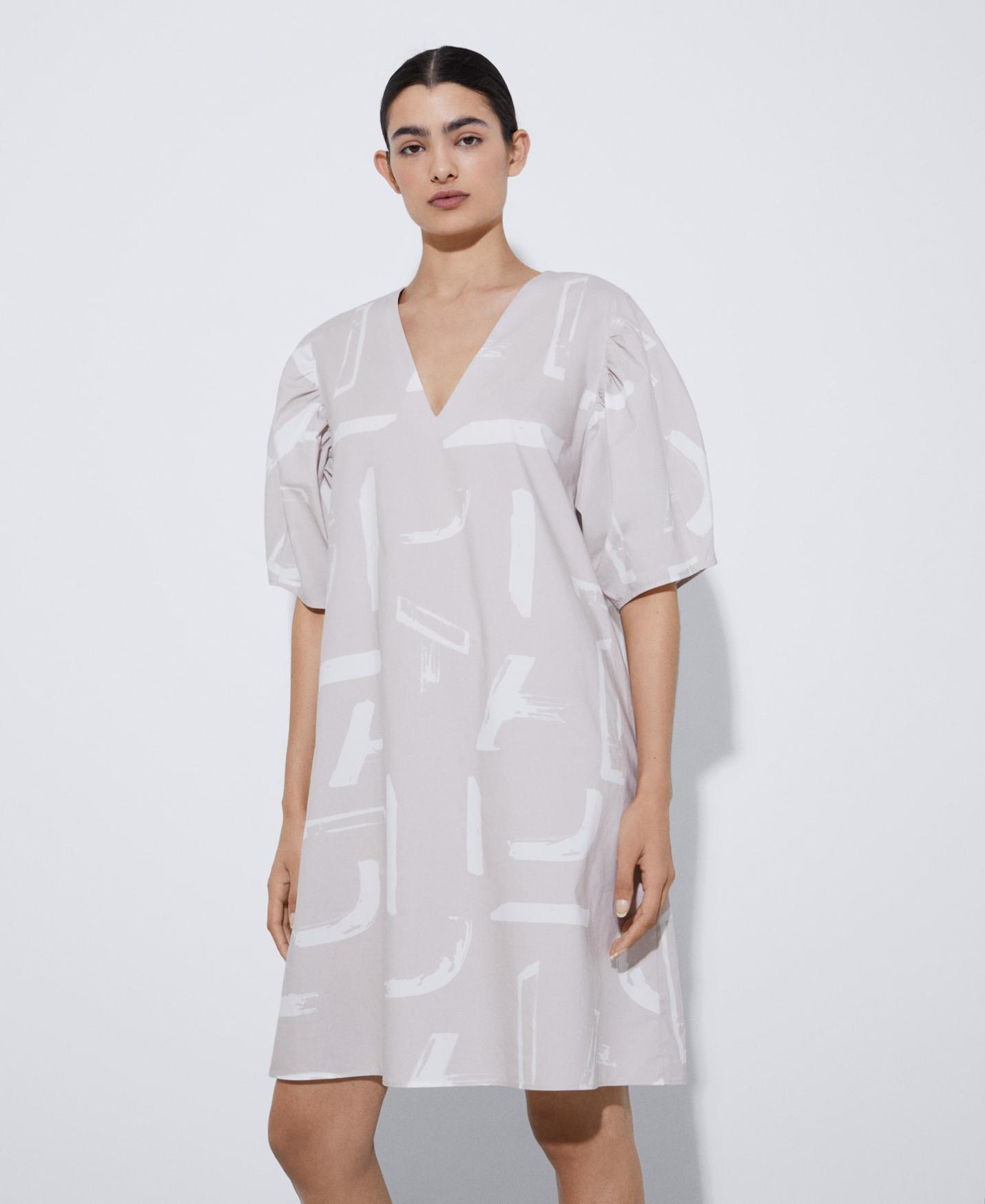 Vestidos y monos Adolfo Dominguez | Vestido estampado manga abullonada Camelestampado Mujer