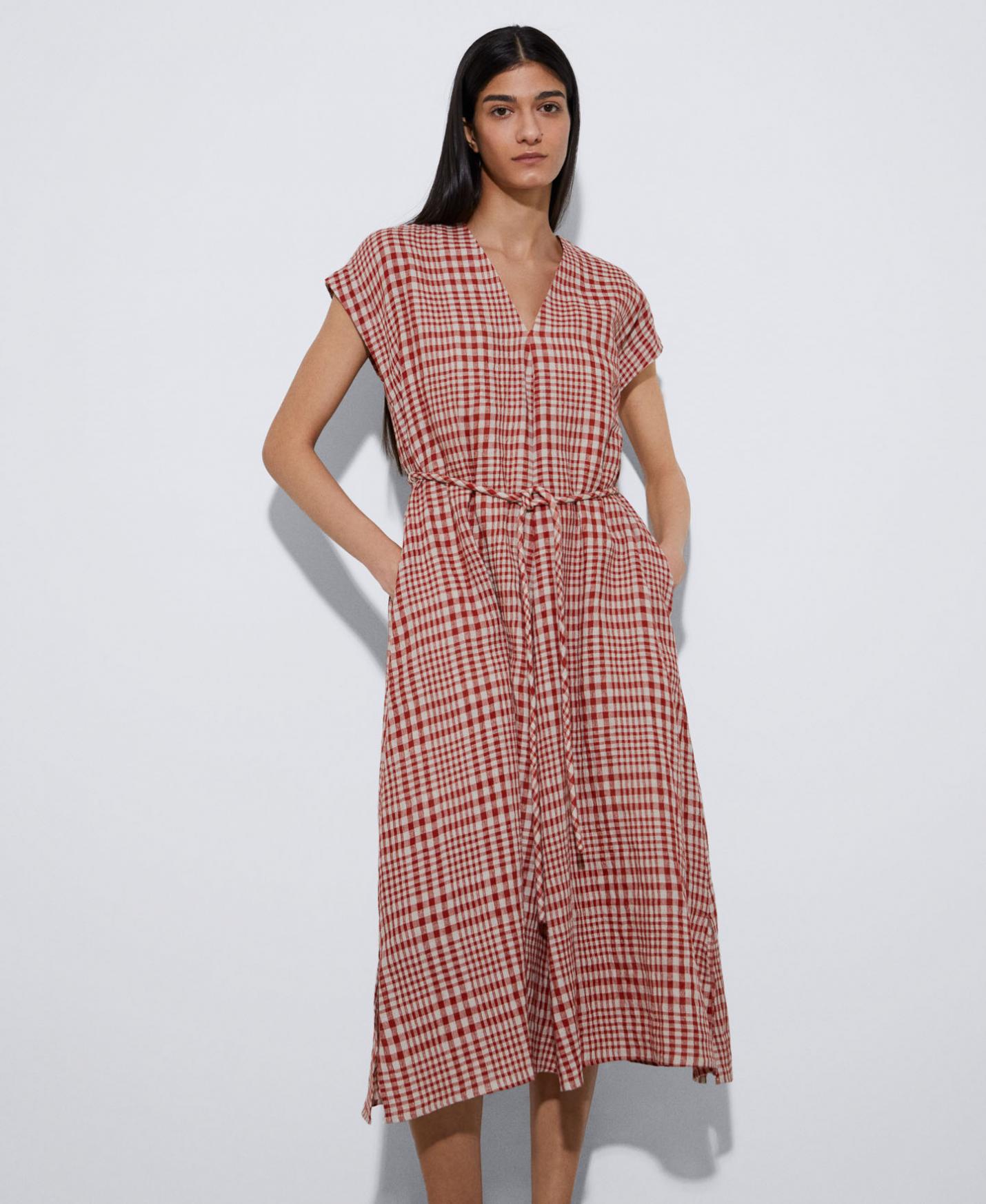 Vestidos y monos Adolfo Dominguez | Vestido midi en lino europeo Rojocuadros Mujer