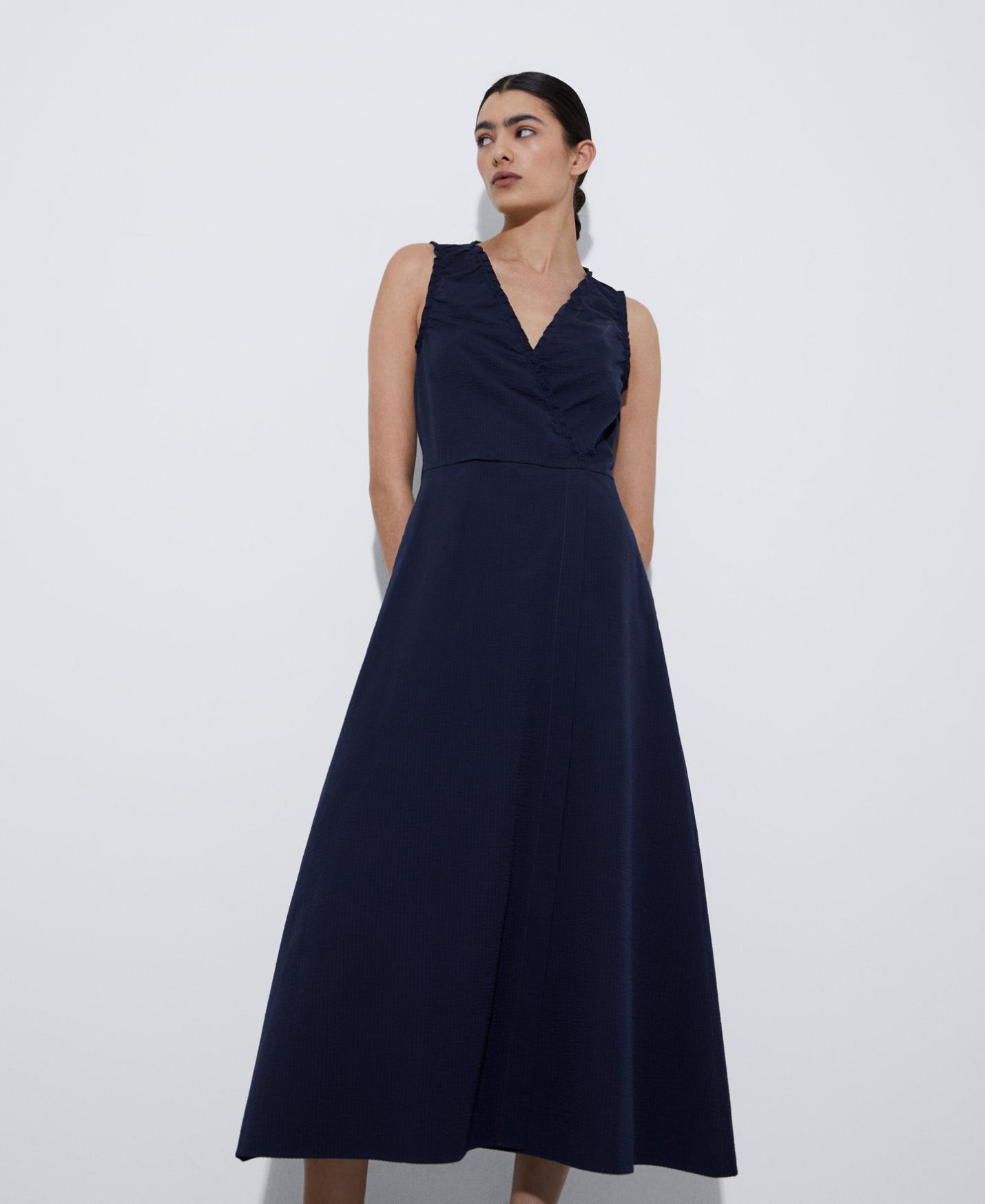 Vestidos y monos Adolfo Dominguez | Vestido seersucker escote fruncido Azulmarino Mujer