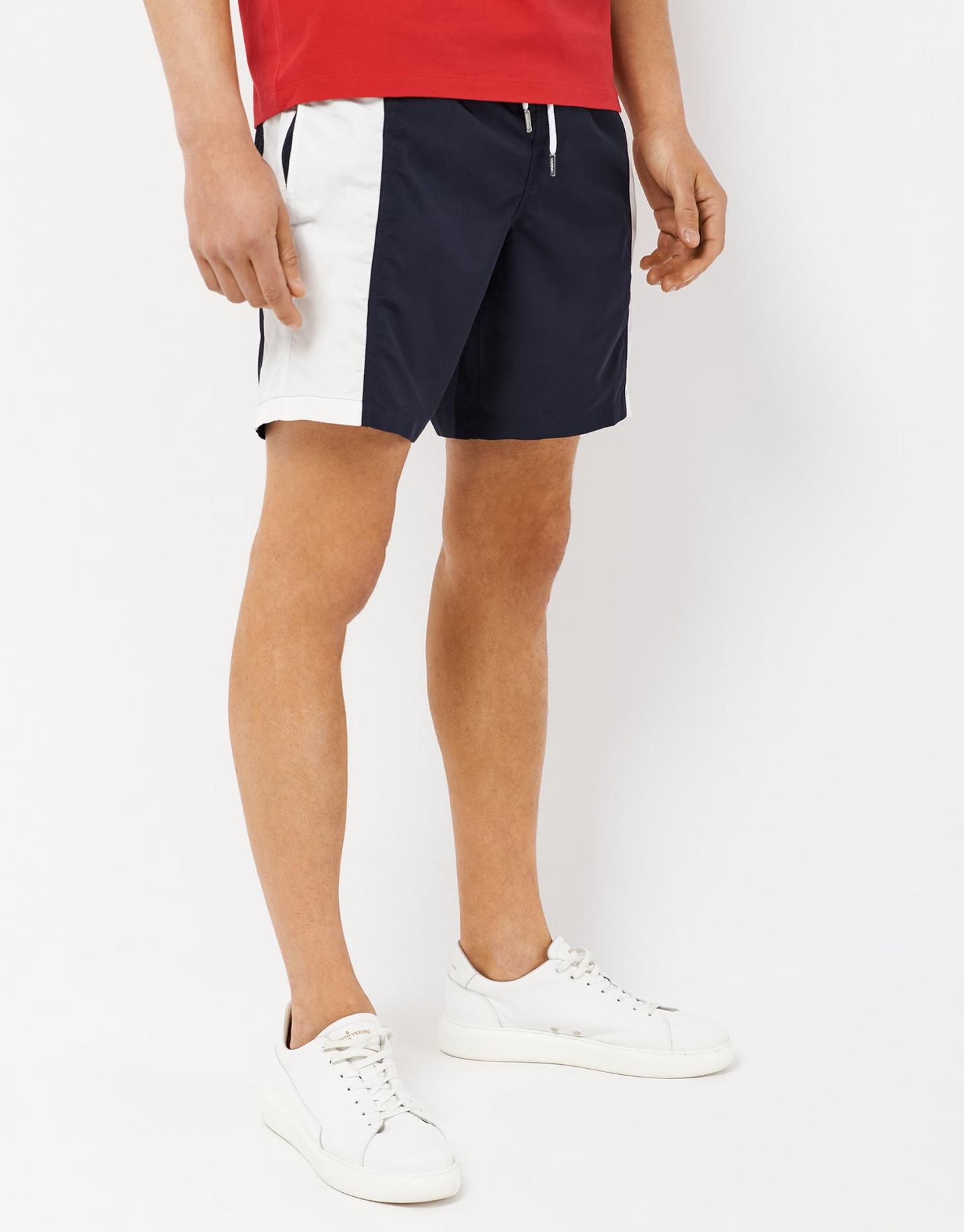 Bañador realizado en un tejido de secado rápido de estilo deportivo en color marino y blanco con personalización en el lateral. …