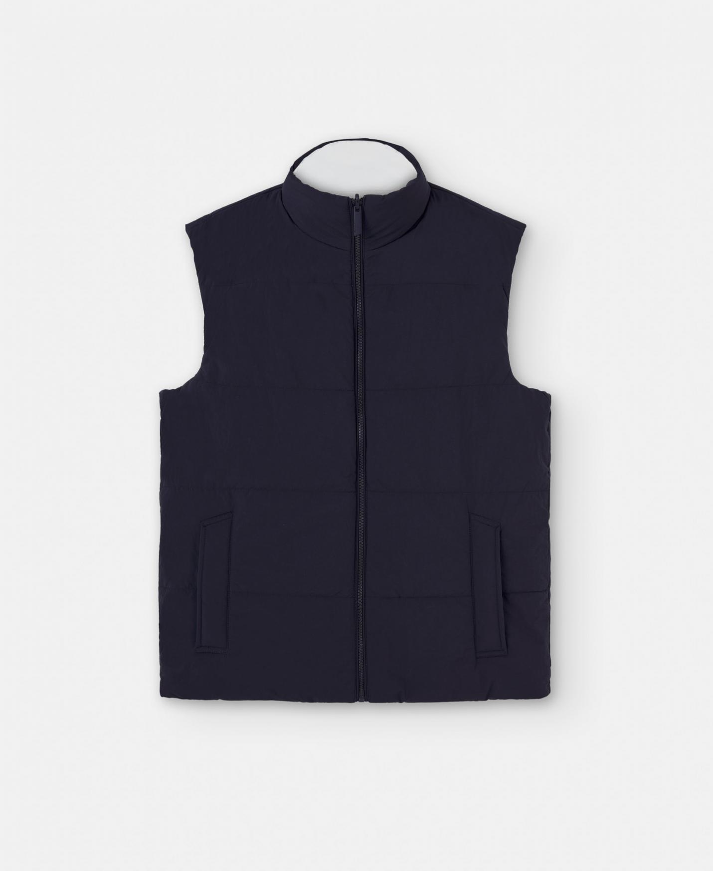 Chaleco acolchado reversible en nylon. Tiene cierre cremallera y bolsillos en delantero. Relleno sintético.