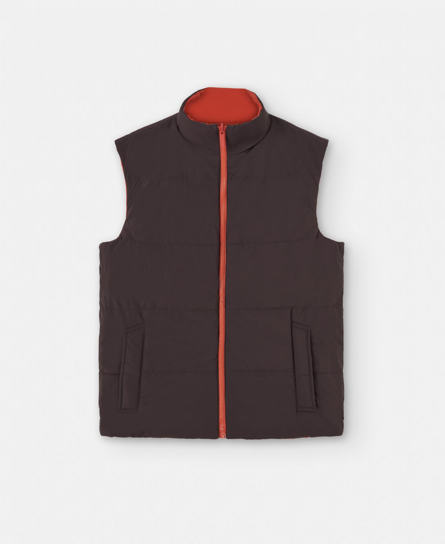 Chaleco acolchado reversible en nylon. Tiene cierre cremallera y bolsillos en delantero. Relleno sintético.