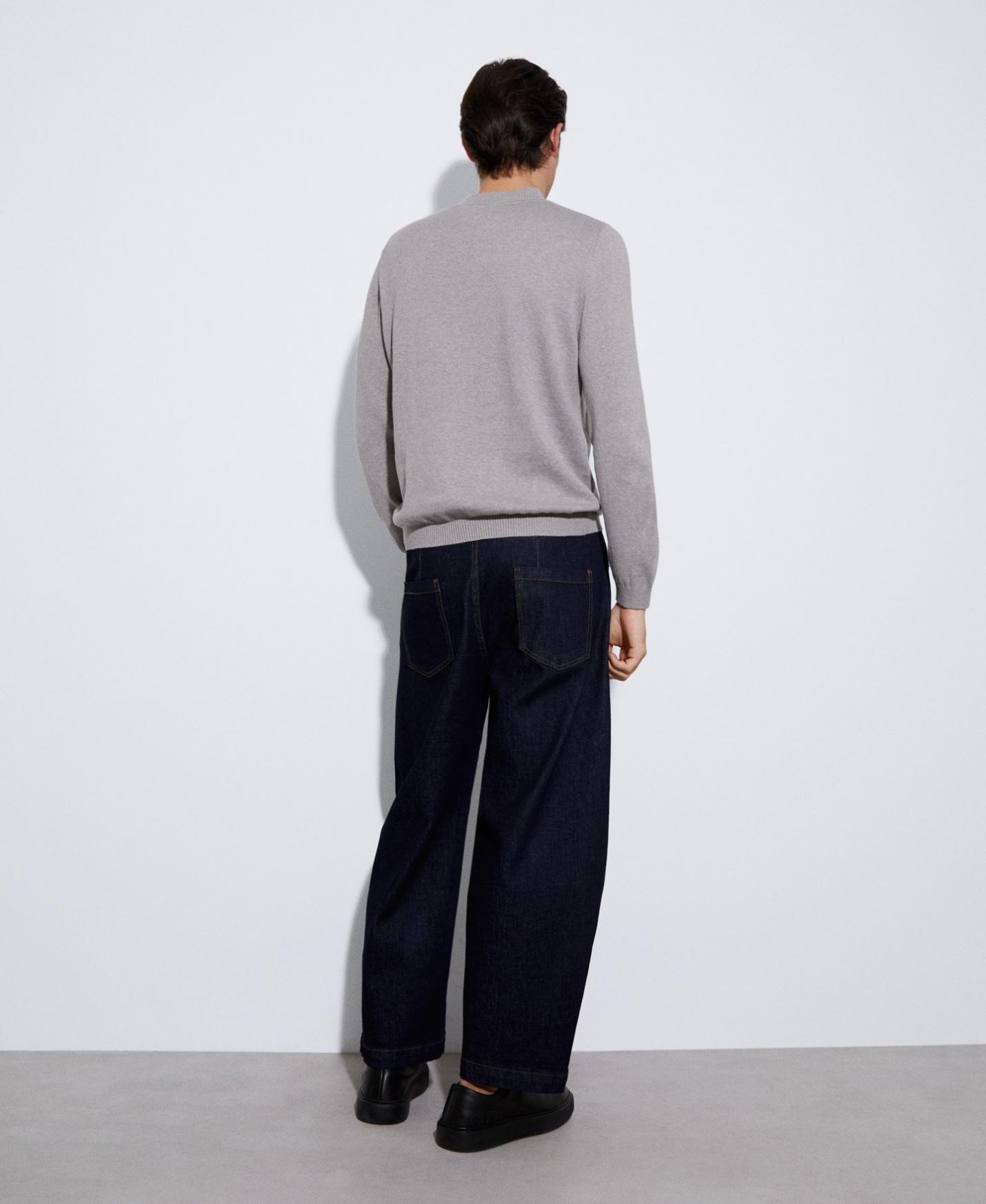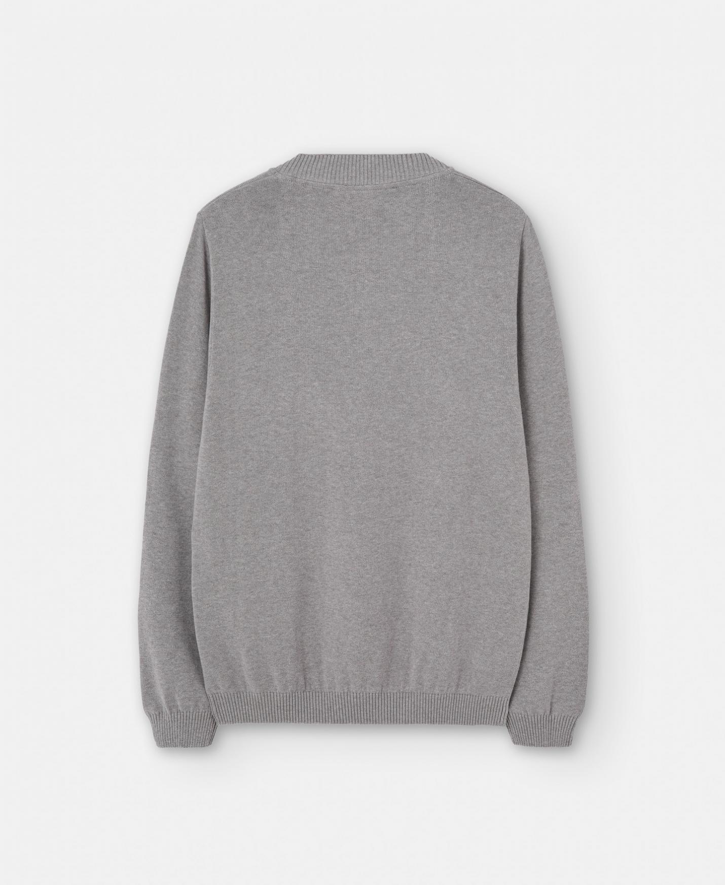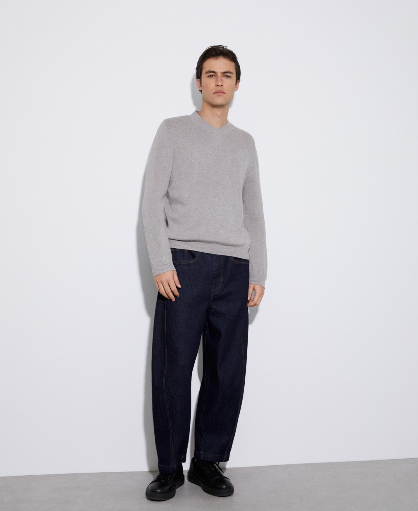 Jersey cuello pico en algodón responsable. Tiene cuello pico, manga larga y remates en rib.