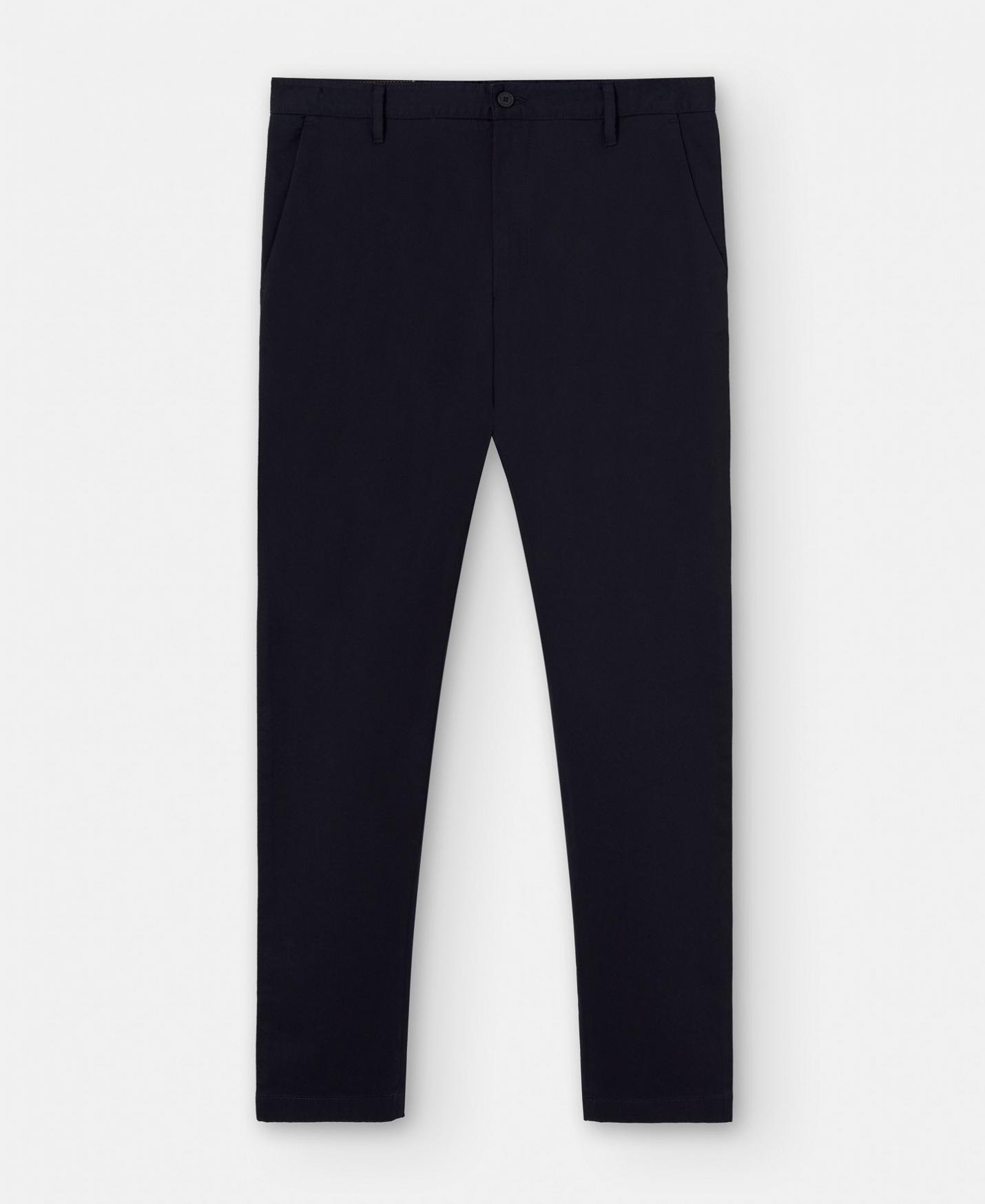 Pantalón chino silueta zanahoria en algodón responsable. Tiene bolsillos frontales y bolsillso en vivo traseros. Cierre frontal de cremallera y botón.