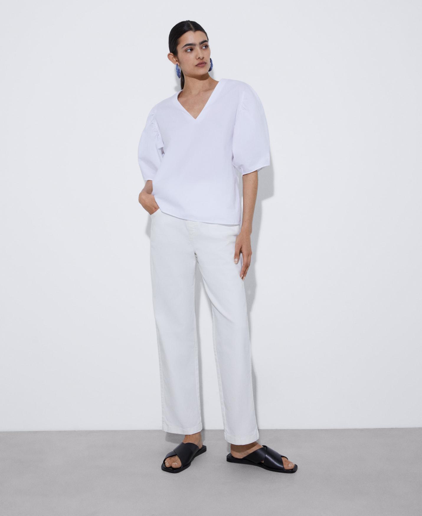 Básicos Adolfo Dominguez | Pantalón recto en algodón orgánico Blanco Mujer