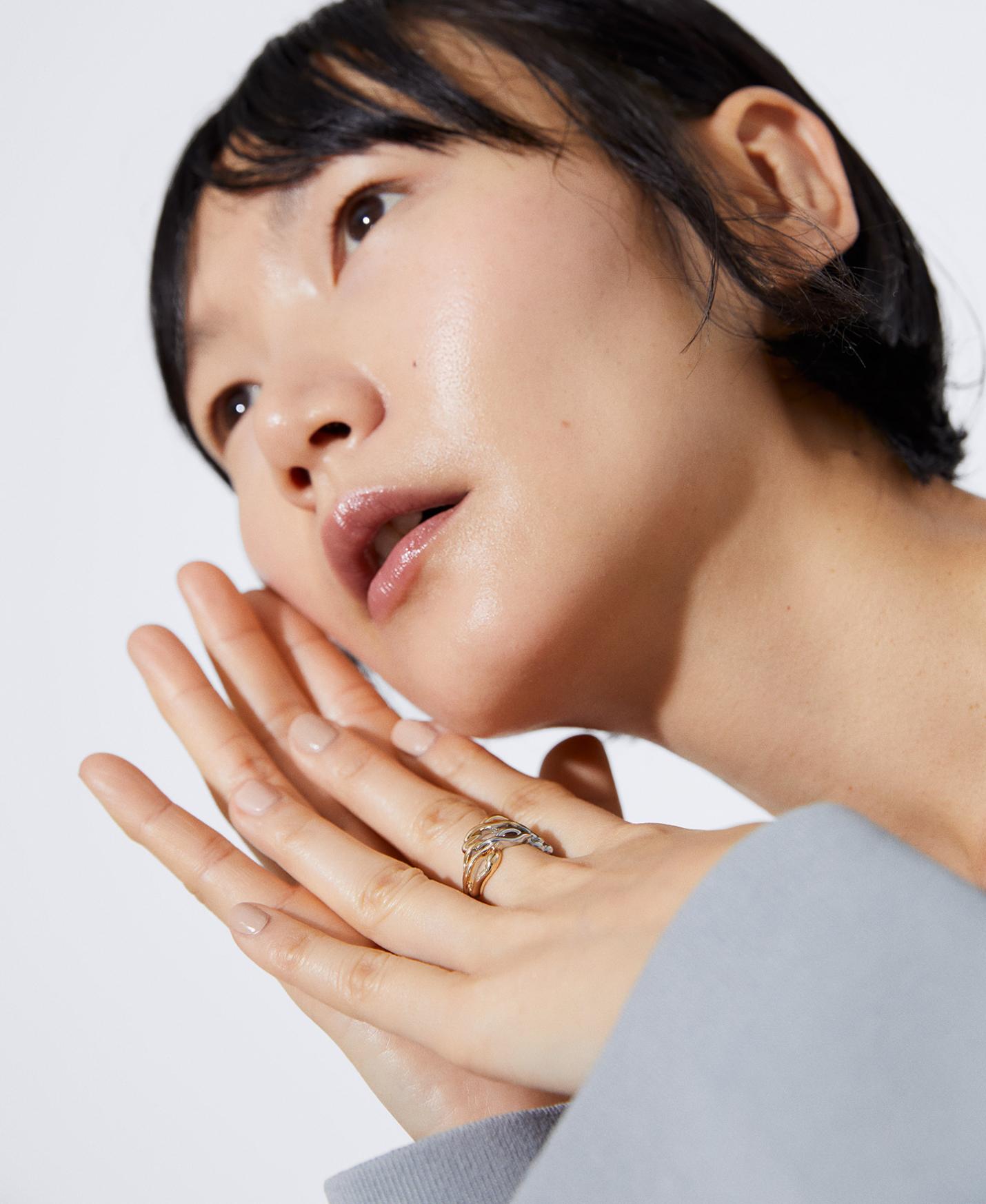 Anillo silueta hoja en zinc. Acabado dorado y plateado.