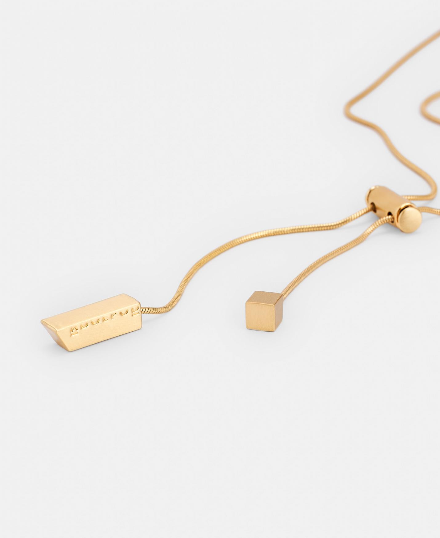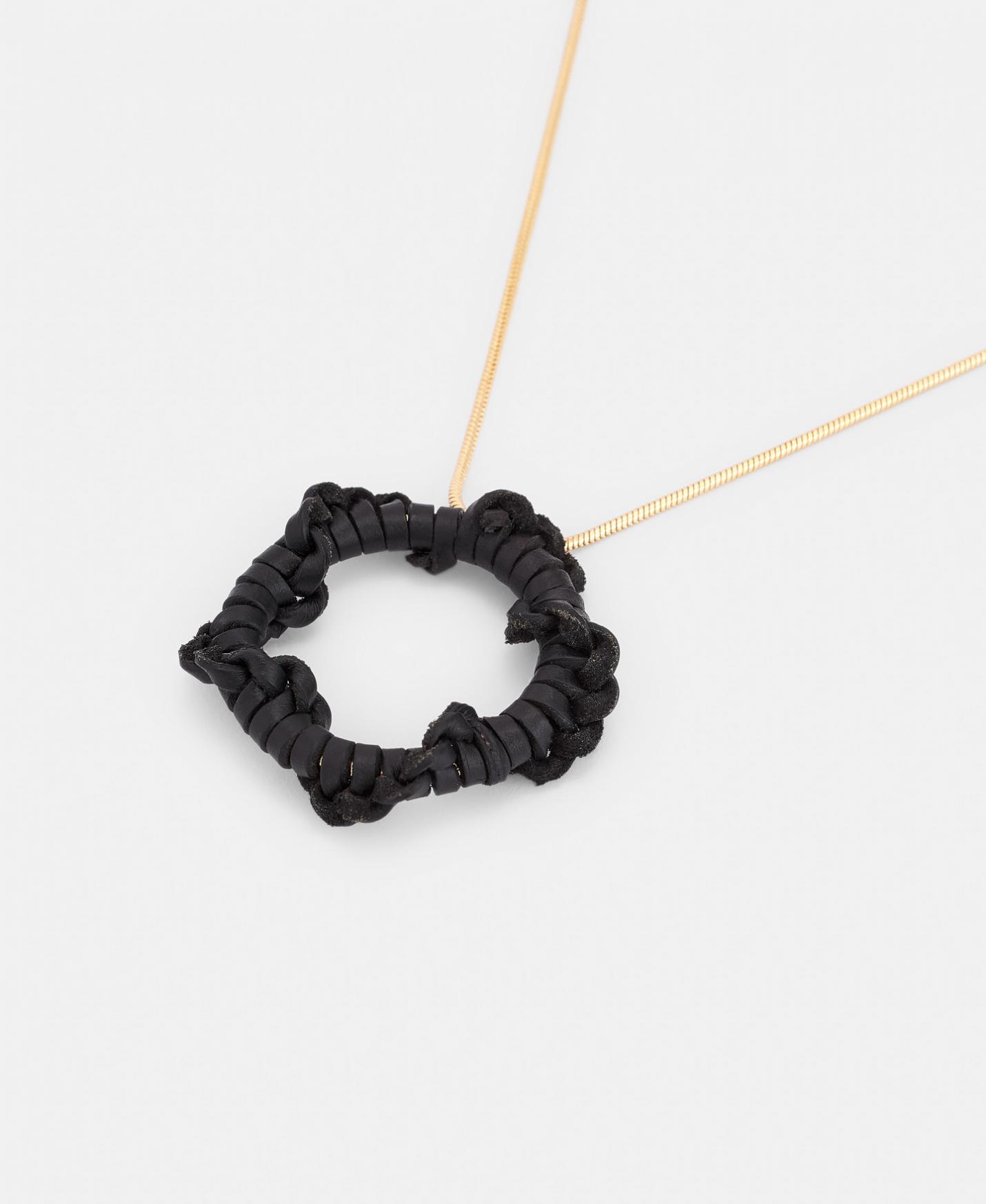 Colgante con motivo trenzado en piel. Con largo regulable y terminal logotipado.