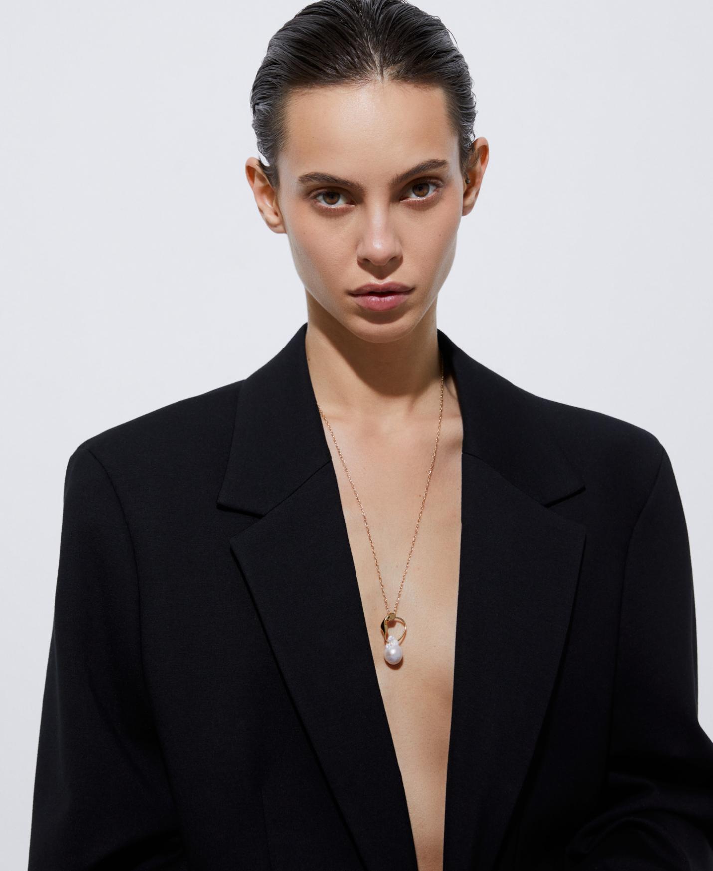 Colgante con perla orgánica. Largo regulable. Terminal logotipado.