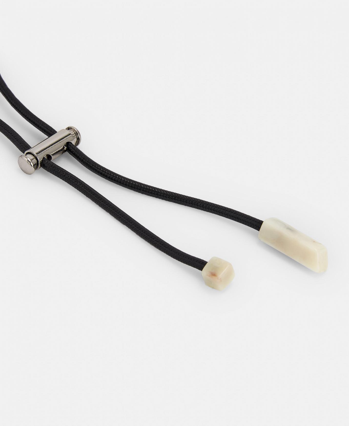 Colgante orgánico con torsión. Tiene largo regulable y terminales logotipados.
