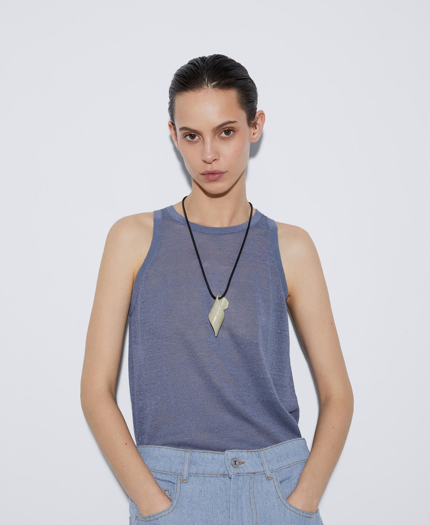 DescripciónRef.226452104221 Colgante orgánico con torsión. Tiene largo regulable y terminales logotipados. 75 cm forma orgánica largo regulable …