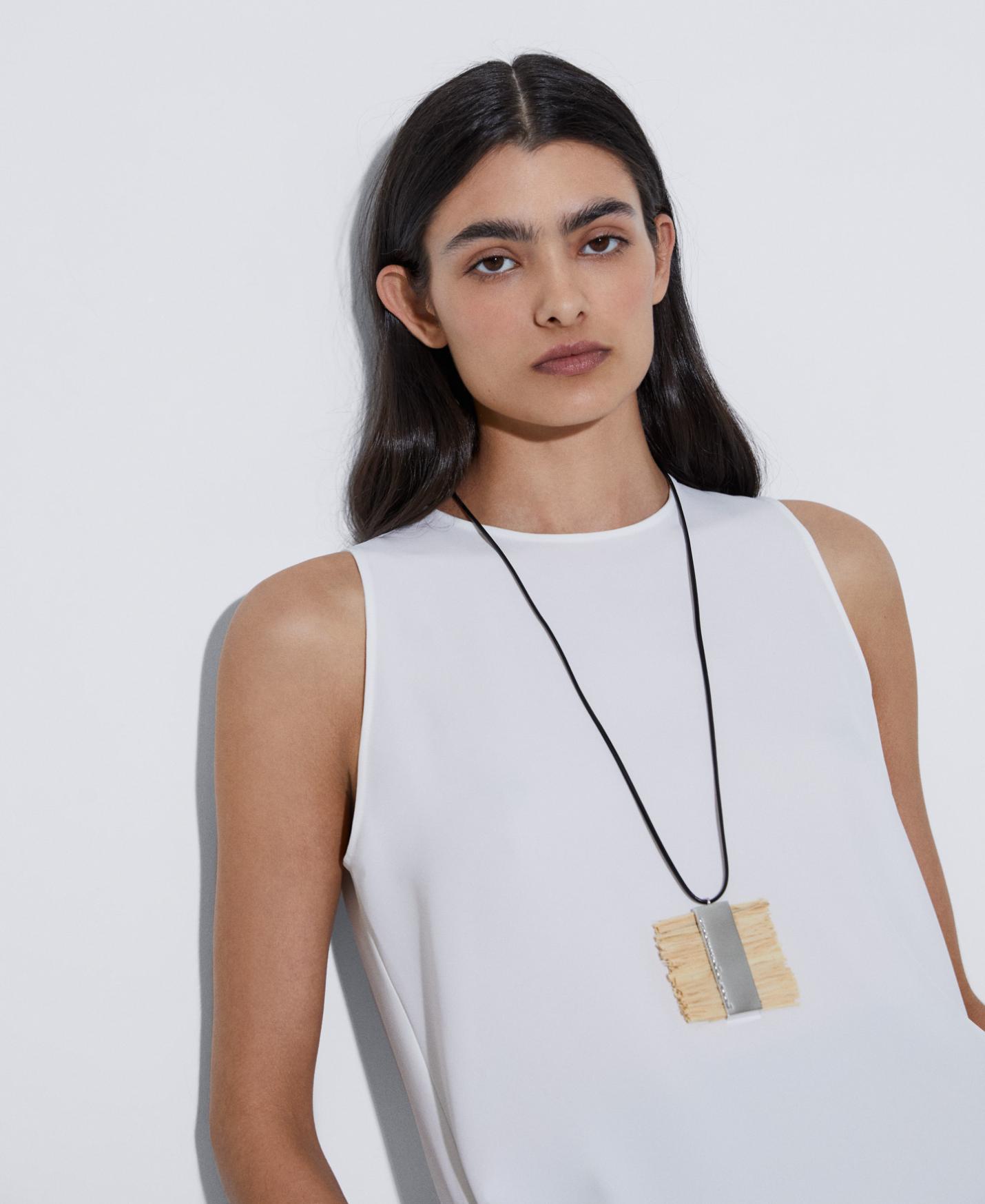 Collar asimétrico que combina la materia de rafia y el zinc.