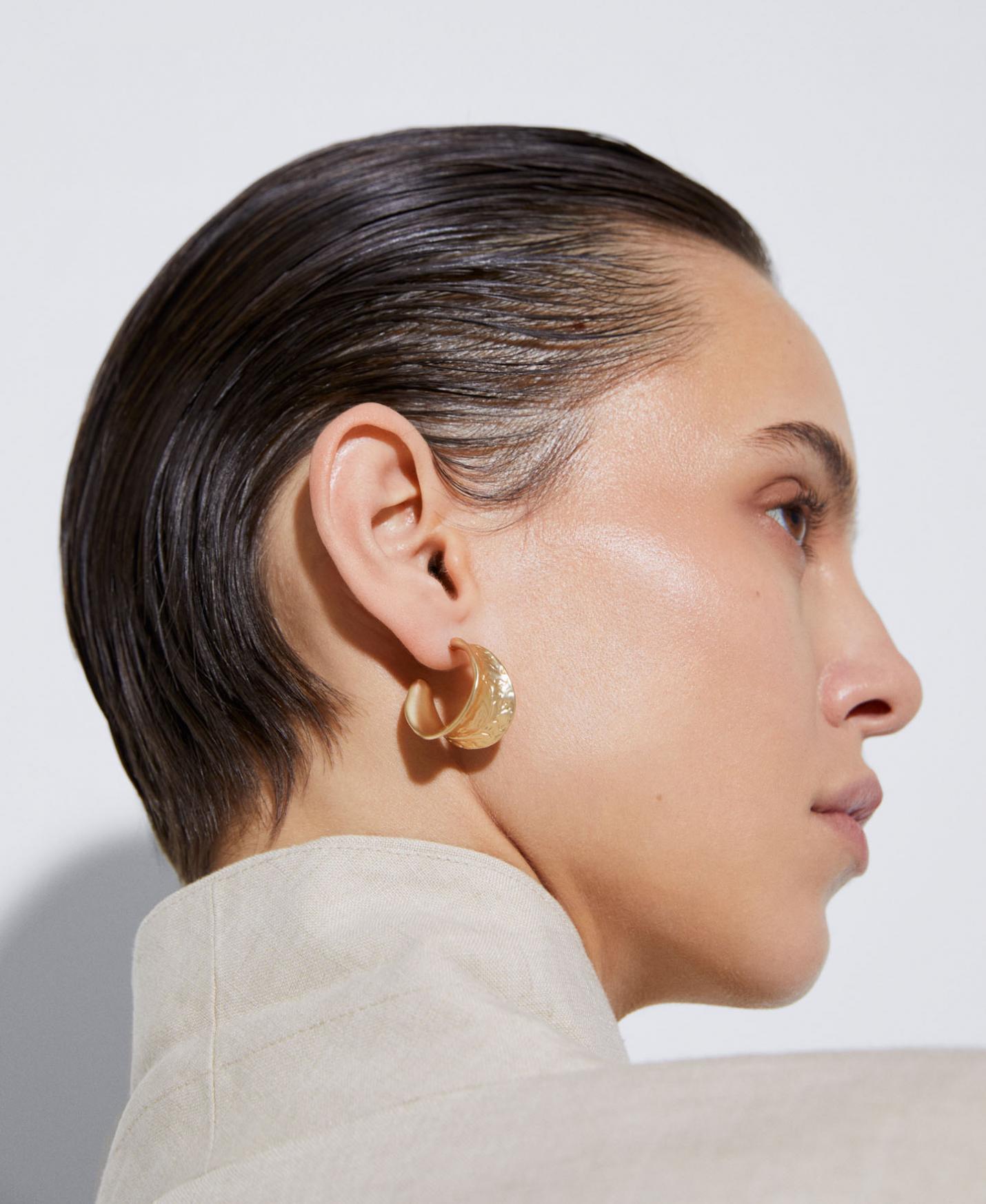 Bisutería Adolfo Dominguez | Pendiente metálico motivo prensado Dorado Mujer