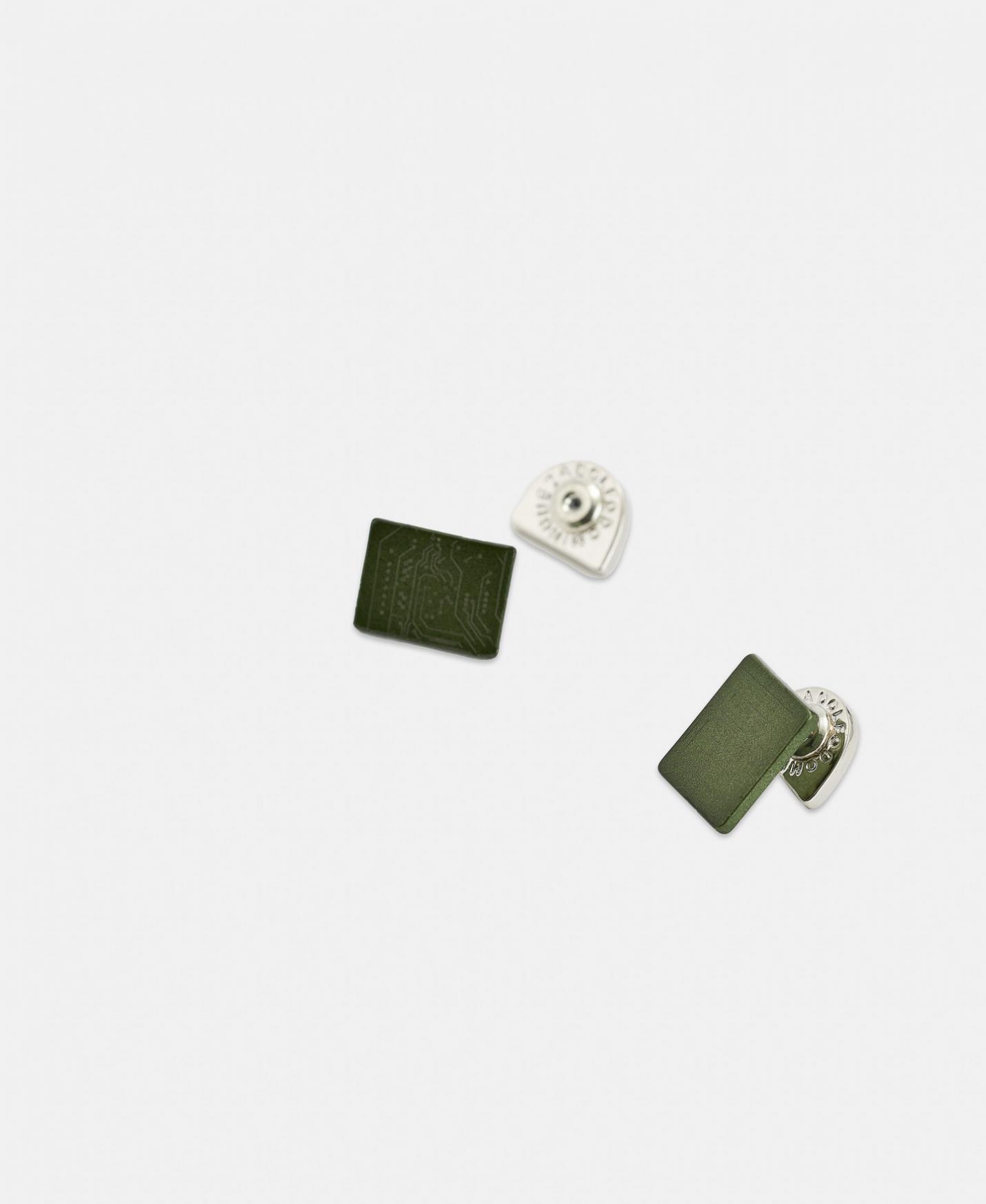 Pendientes rectangulares con grabado de microchip, uno de los motivos de la colección.