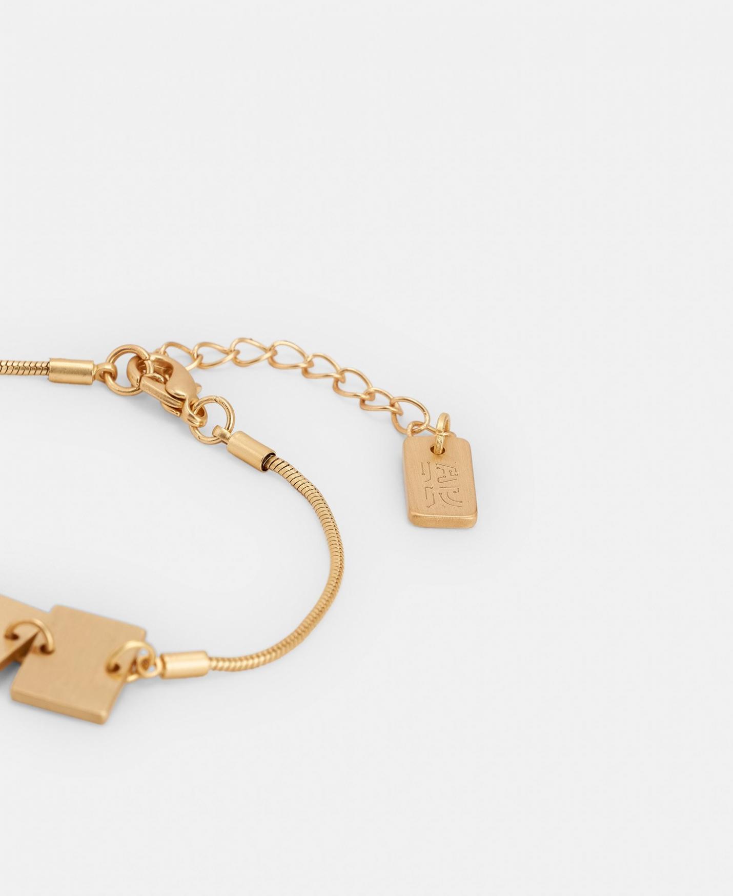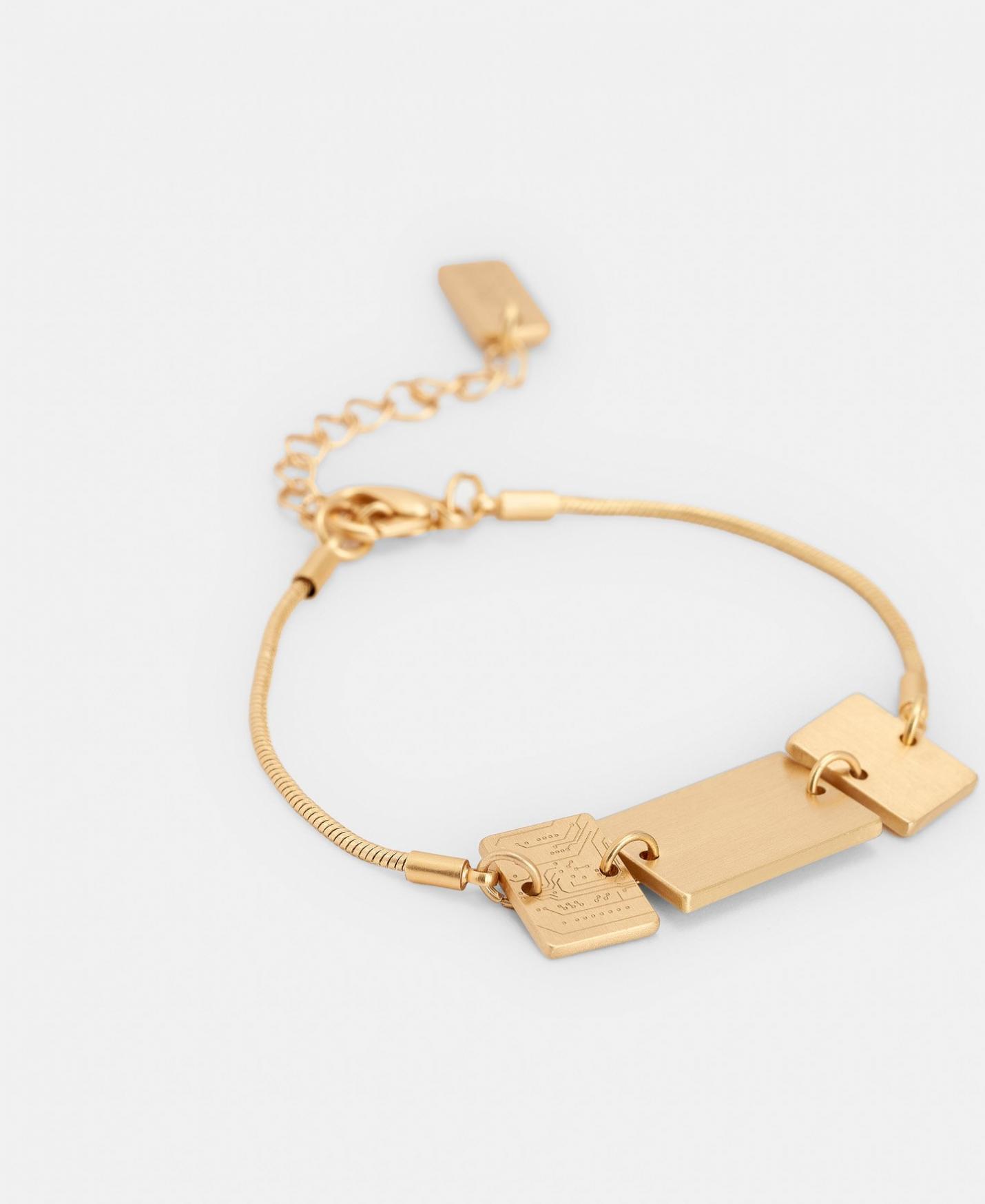Pulsera con placas en latón grabadas con el motivo microchip. Tiene cierre regulable y terminal logotipado.
