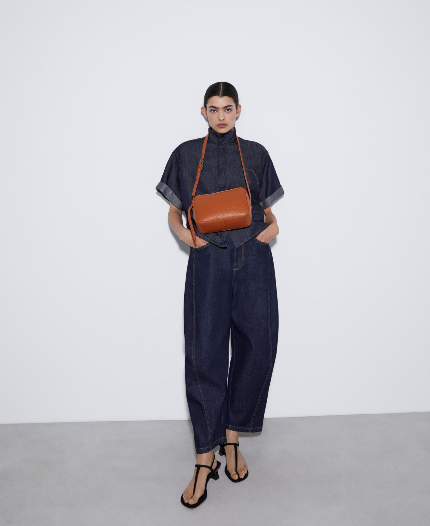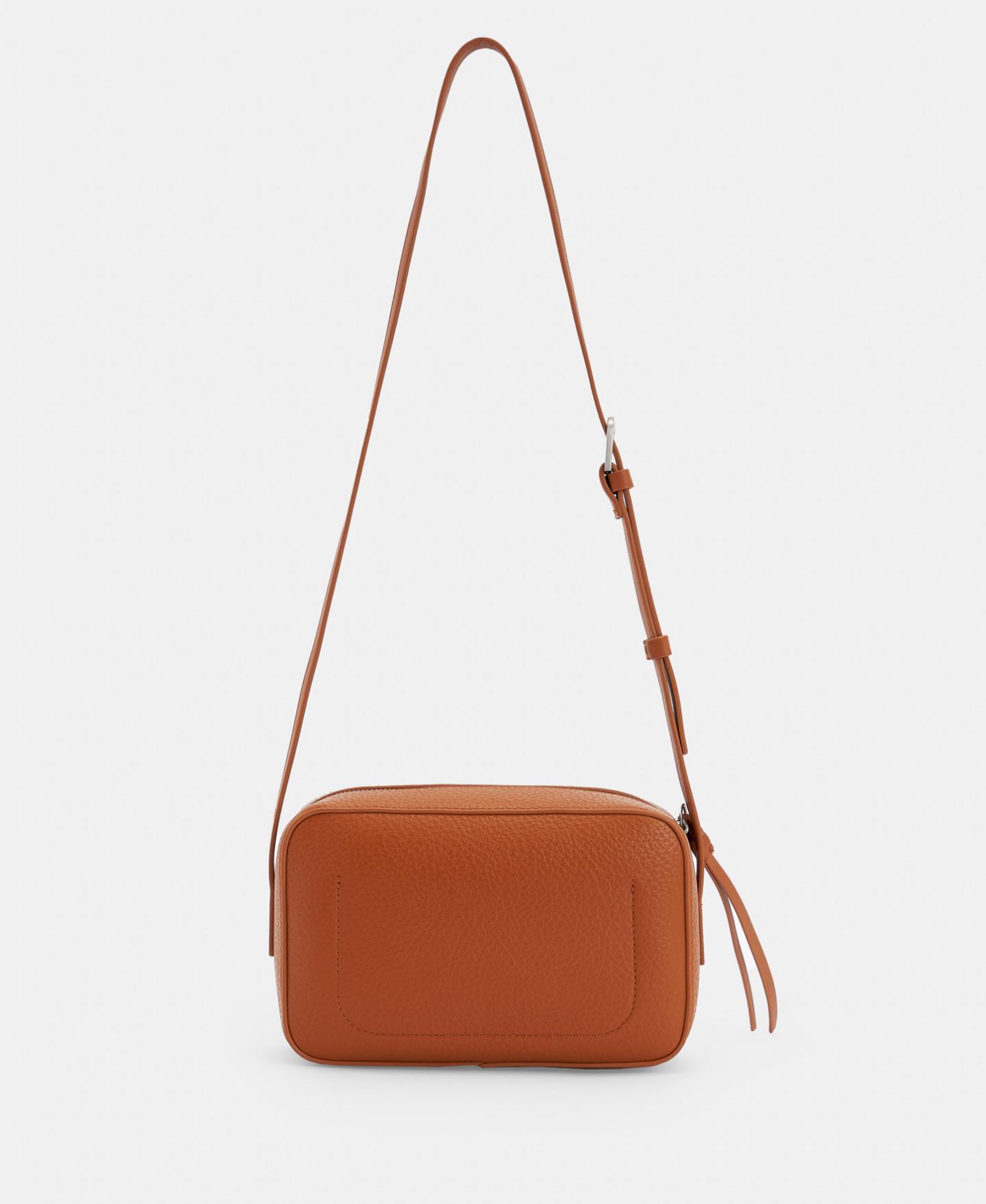 Bandolera rectangular en poliéster y poliuretano reciclados en textura grano. Tiene un compartimento con cierre de cremallera y asa larga regulable con hebilla en metal reciclado.