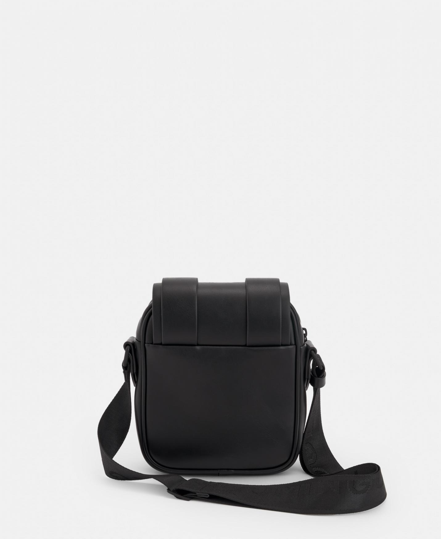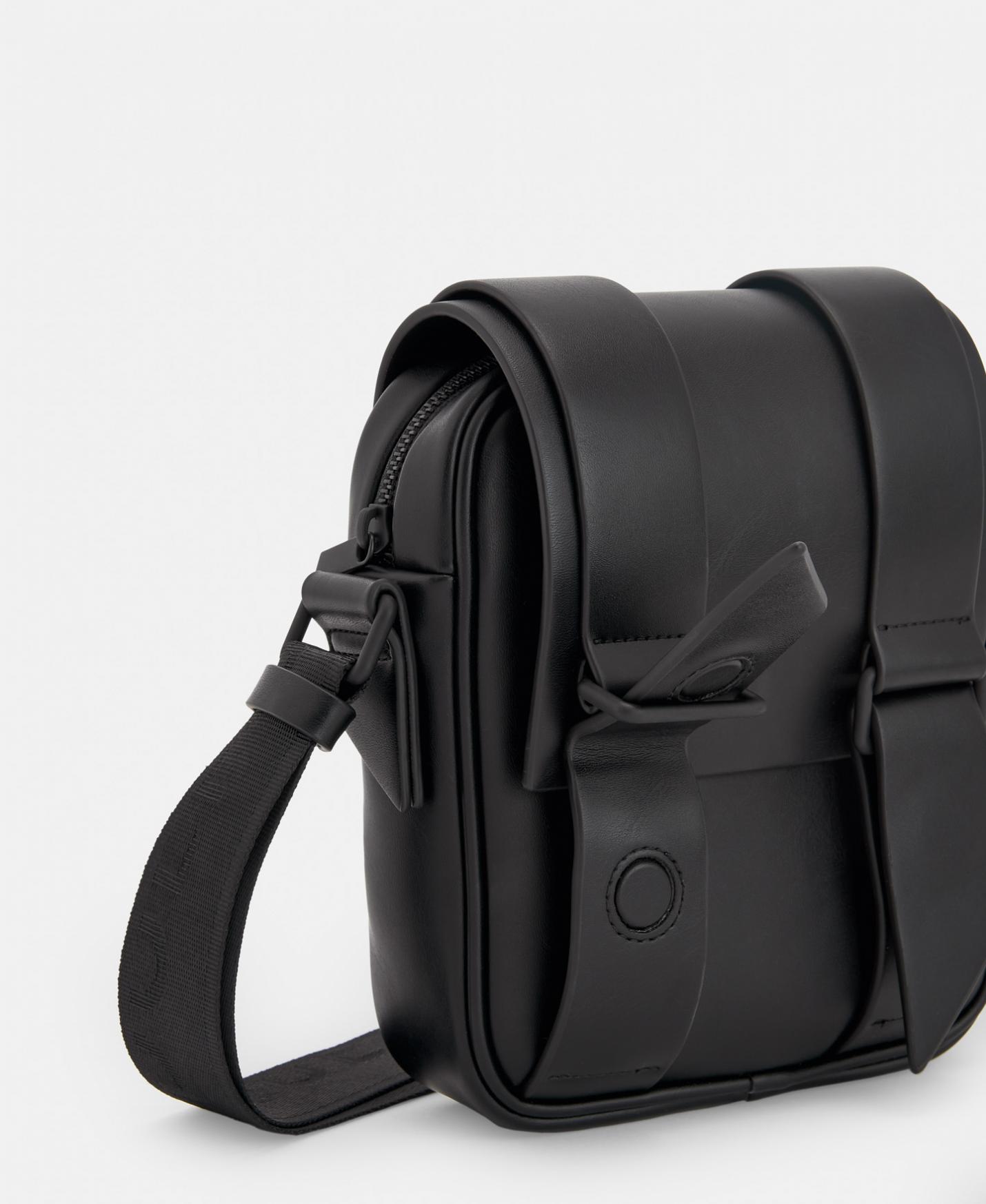 Bandolera pequeña en poliuretano reciclado. Tiene un compartimento principal con cierre de hebillas metálicas de inspiración montañera. Asa de hombro regulable. Forro de algodón orgánico.