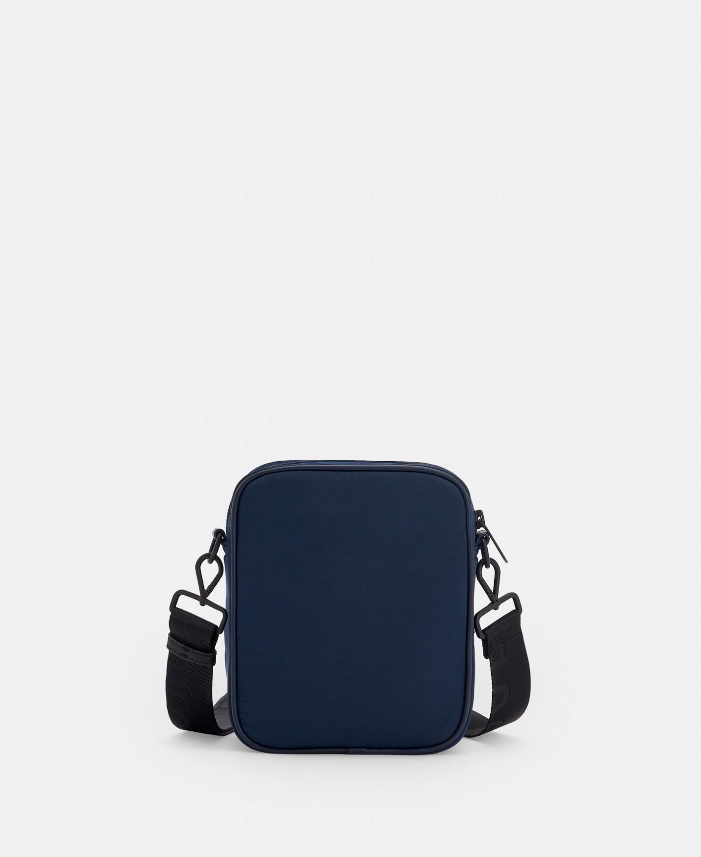 Bandolera pequeña en poliéster reciclado. Correa logotipada en grogrén de nylon reciclado. Tiene un compartimento con cierre de cremallera y un segundo bolsillo frontal con cierre de imán.