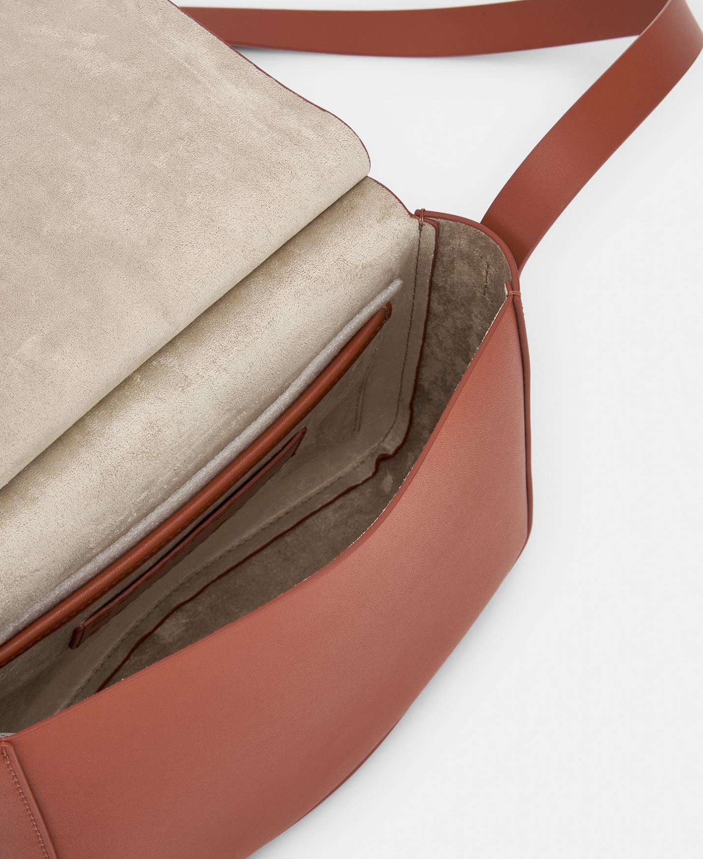 Bolso bandolera con cierre solapa logotipada. Elaborada mediante curtición responsable. Asa larga, forro interior.