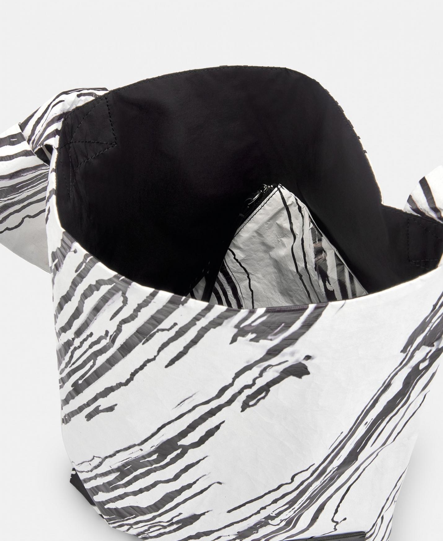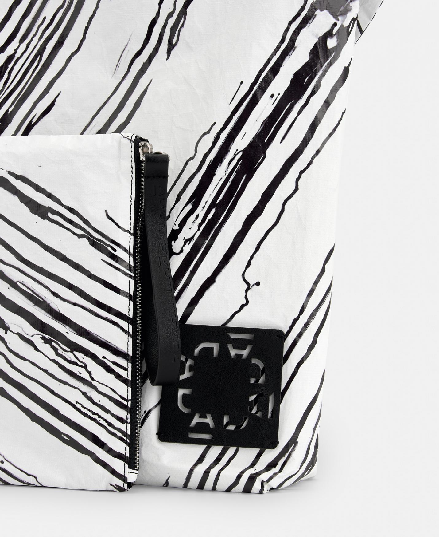 Bolso estampado en polietileno reciclado. Interior de nylon. Con bolsa interior extraíble con cierre de cremallera.