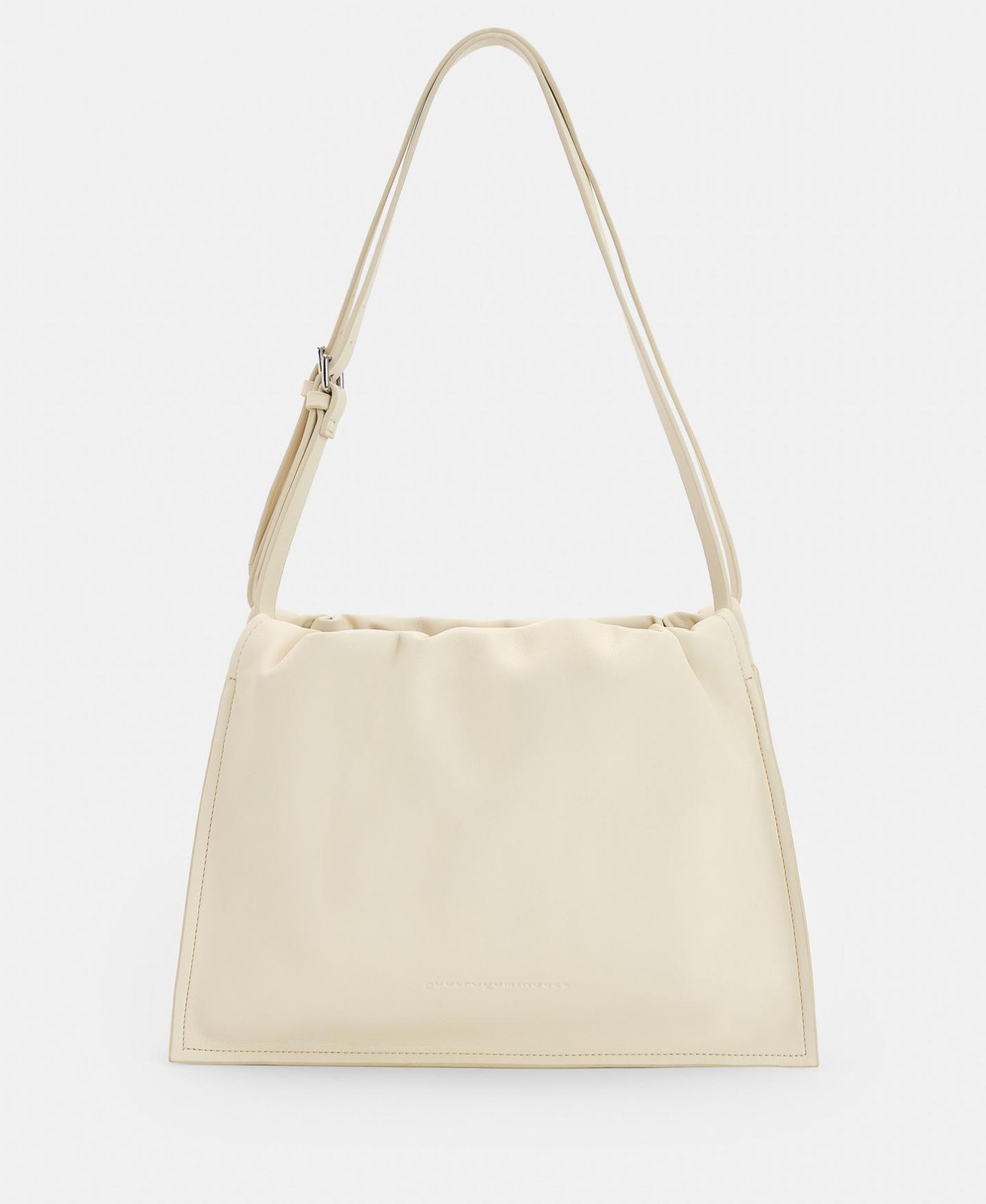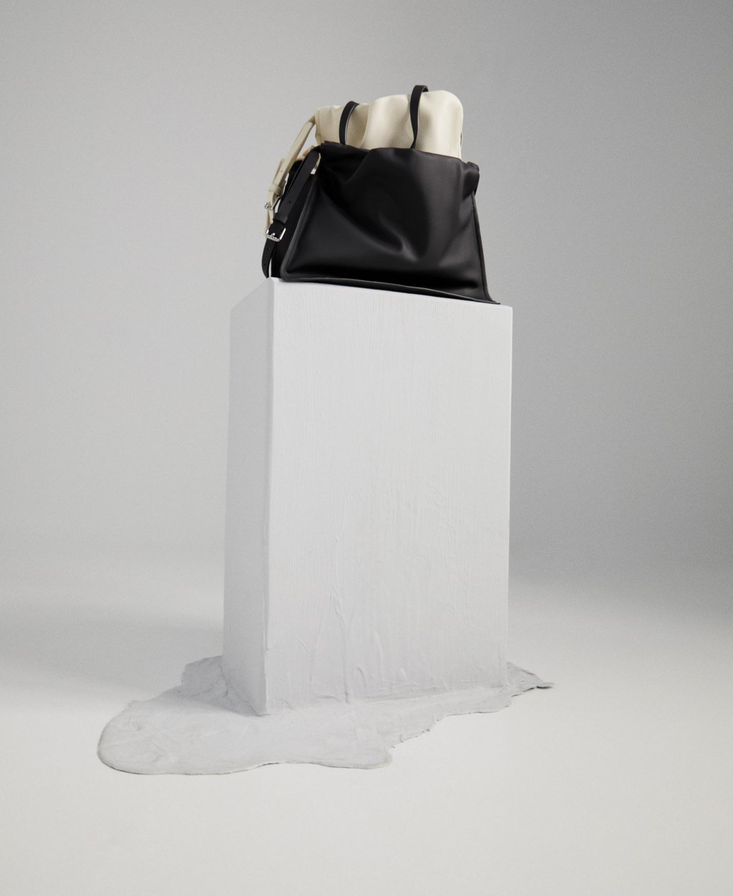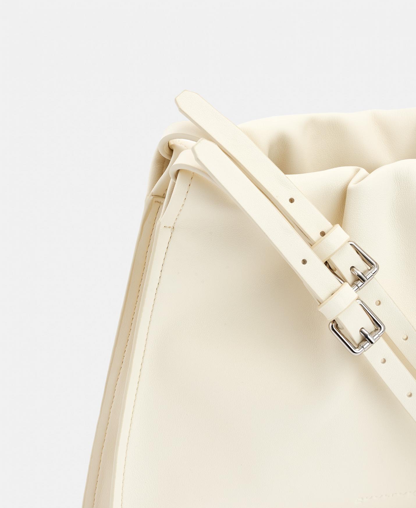 DescripciónRef.212031265321 Bolso en poliuretano reciclado y forro de algodón orgánico. Con frunces en su parte superior y doble asa regulable con hebillas. Tiene …